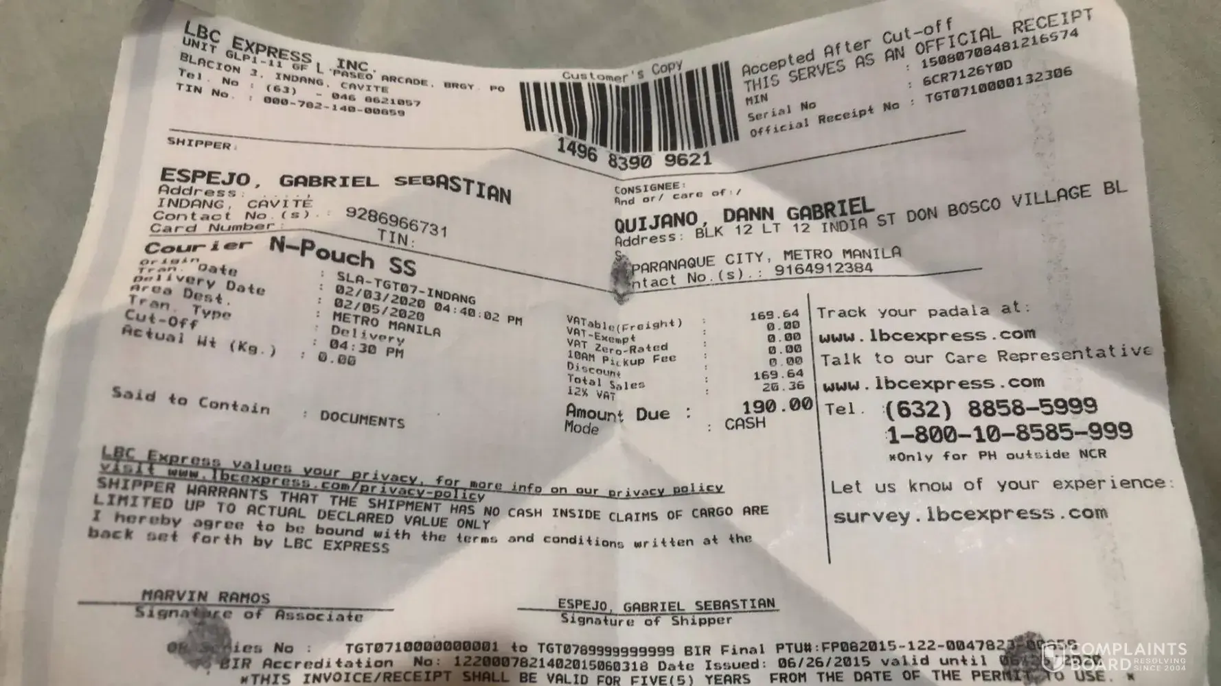 I am a very DISATISFIED customer given that these are legal documents and I felt that it is not safe to send shipment via LBC.
