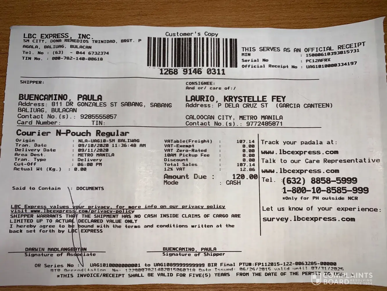 I sent the package to the customer 10th of august for cash on pick-up, after of almost a month the package was ready for pick up on the 3rd of September so the customer picked up the item on the 4th of September but until now, I still don't have the payment for the shoes that i have sold because the website it not yet updated or i mean LBC's system is not yet updated that the customer already picked up the item. the customer already sent me pictures that he already have the shoes, but still I can't have the payment?! I badly need money the reason why I sold my shoes but now it's almost a month from when the customer picked up the item and i dont have the money still. I've tried contacting LBC multiple times, but the last email i received was on the 18th of September saying they already escalated the issue. I keep asking for updates but there none until now. I'm really worried and i dont think LBC is taking any action regarding my concern