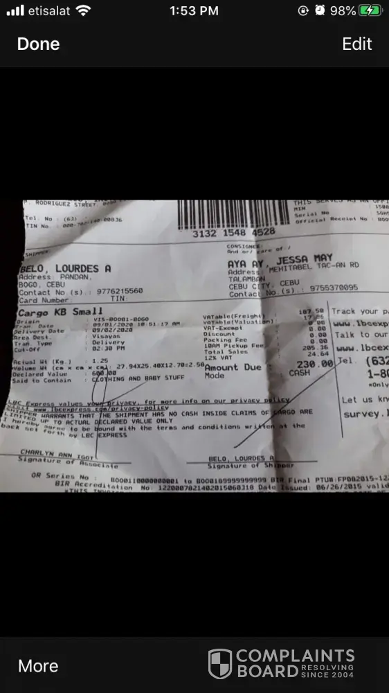 Lbc ndi man lang kumontak bago ibalik sa sender. Taga nueva ecija yung tao willing nman ipick up tas hindi na kayo makontak. Ilang araw lang pagitan ibabalik nyo agad sa sender?!'anong klase yan walang makausap