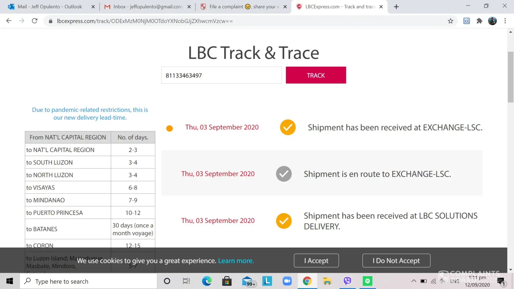 I sent a parcel last August 20, 2020 at LBC Lapu Lapu Legazpi City Branch, as advised up to 1 week lead time for the delivery, check ko lang daw palagi sa online tracking. But up to now, September 8, 2020 still no update! I even asked the sending branch and as advised they will give me feedback pero wala naman nakakailang email na rin ako lagi lang forwarded wala naman masabing exact information. As client we also have the right to know any update, pinagkatiwala naming sainyo yung parcel namin. anong petsa na wala pa rin. it was to be an advance birthday gift pero inabutan na ng birthday ng receiver. Package contains branch new Huawei phone. Please, update me on this. I need immediate assistance.