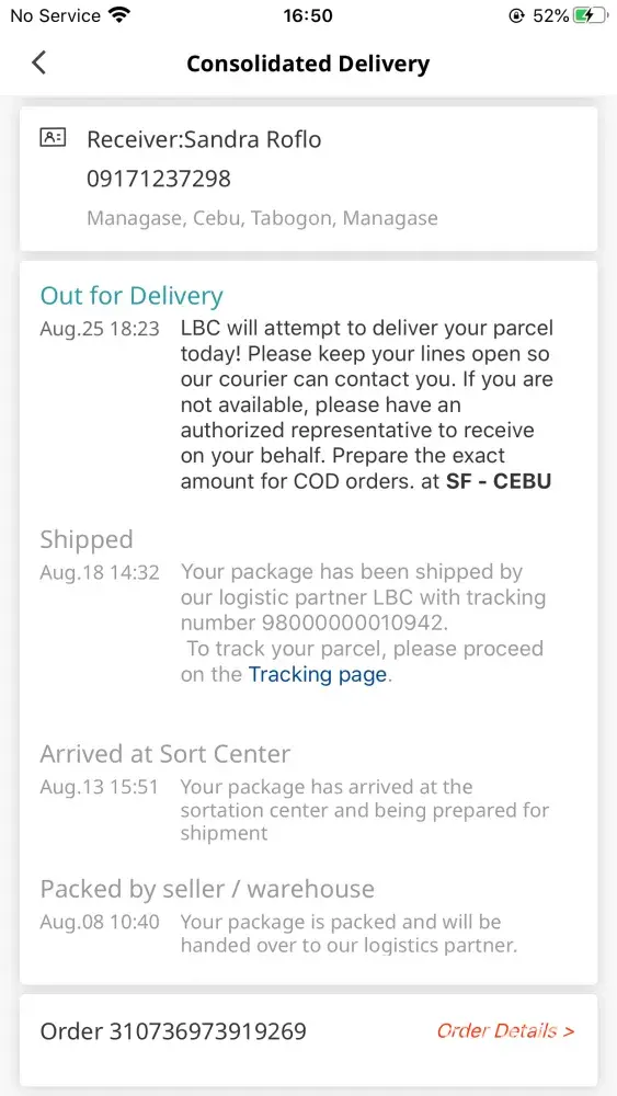 I am here complaining the service of your rider that there is no sign in delivering the items. Hope this will be given your immediate actions since this happened not just only once but several times already. Supposedly the items were delivered yesterday September 3, 2020 here in Blk6 lot 8 Springwood Subdivision Minglanilla Cebu. And we are bothered that the seller send us a message and mark us "bogus buyer" because of the items we did not receive and this is not our mistake but the mistake of the rider. And here is our tracking number :LBC [protected]. Hope for the immediate actions to the management as a business owner.