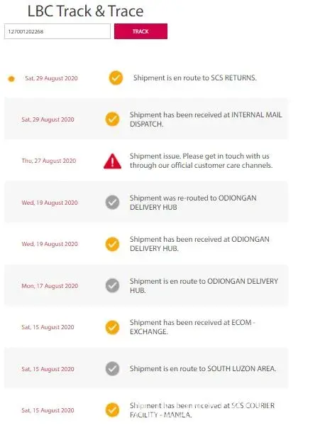 I shipped an item 10th of august. From 19th of august the status is arrived at sf cebu. And that was the last update. I have sent multiple complaints but i'm not getting any response from lbc.