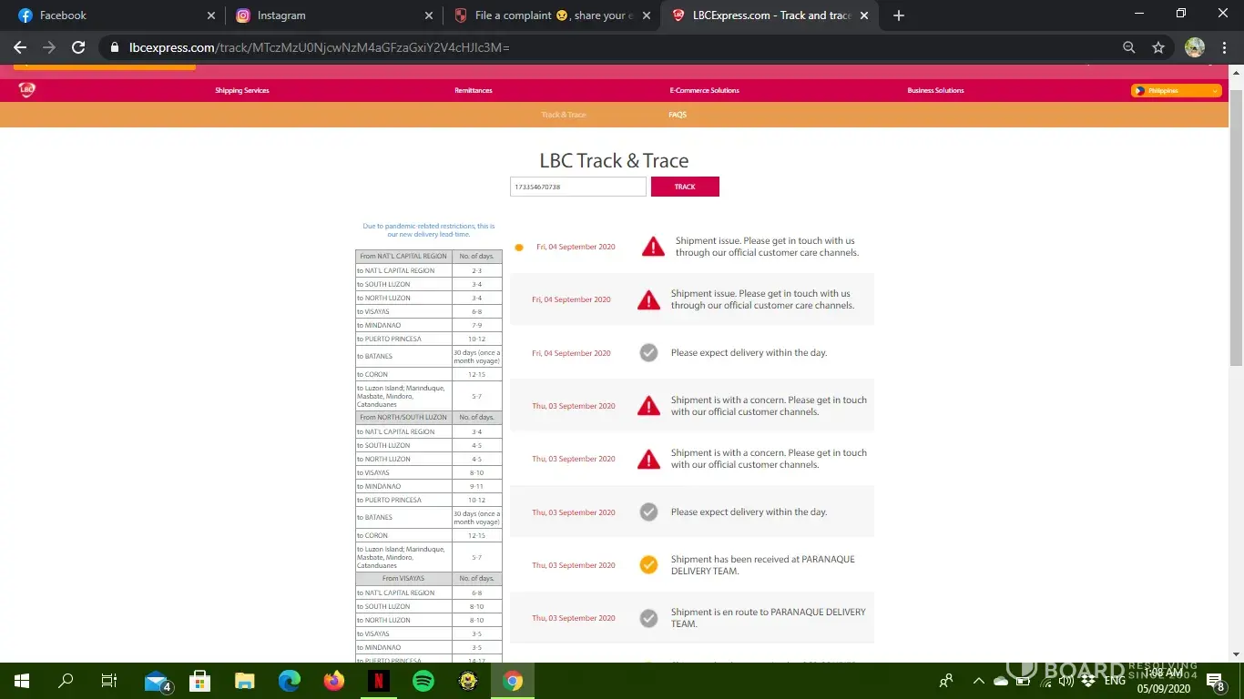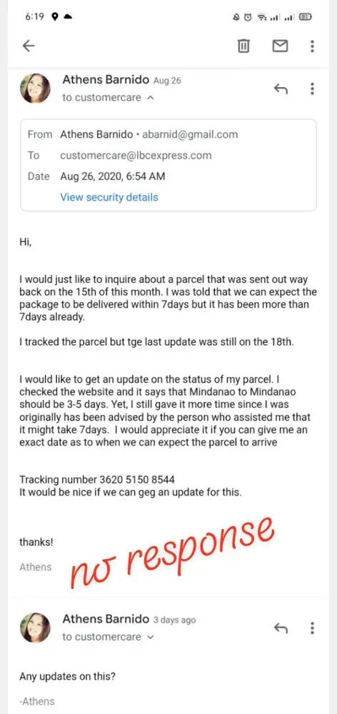 LBC Calbayog Branch - my package has been stock in their branch for a week now. Saying that they can't deliver because of lockdown but other couriers has been able to deliver packages. No updates from the branch nor no reply on their Facebook page. Got a word from our place that they allow entry and resume of delivery services. Hope you'll be able to help me. This will be my last transaction with LBC.