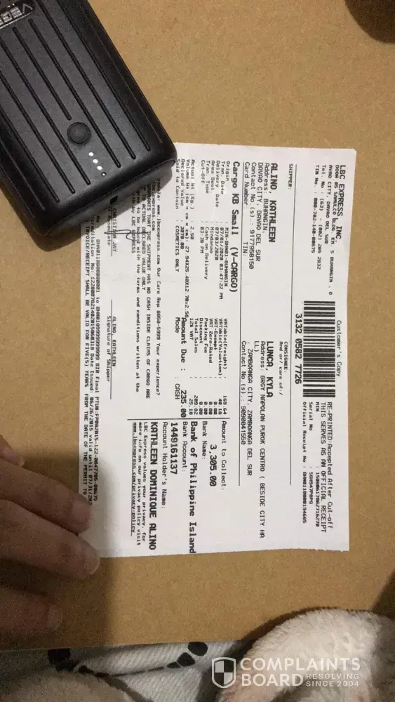 Good day. We had a cargo (3132 0582 7726) sent on 01 Aug 2020 from LBC Buhangin, Davao City, Davao del Sur to Brgy Napolan Purok Centro, Zamboanga del Sur. The cargo was received by the customer on 07 Aug 2020 but in a very bad condition. It would be understood if only 1-2 items were damaged however all of the items were damaged. We have been transacting with LBC since the start of the pandemic but this has been the first time we have encountered such problem. We would like to request a refund on this case. Attached are the pictures -- one is how it looks like inside the box. Please reach out to us at [protected]@yahoo.com or [protected]. Thank you.