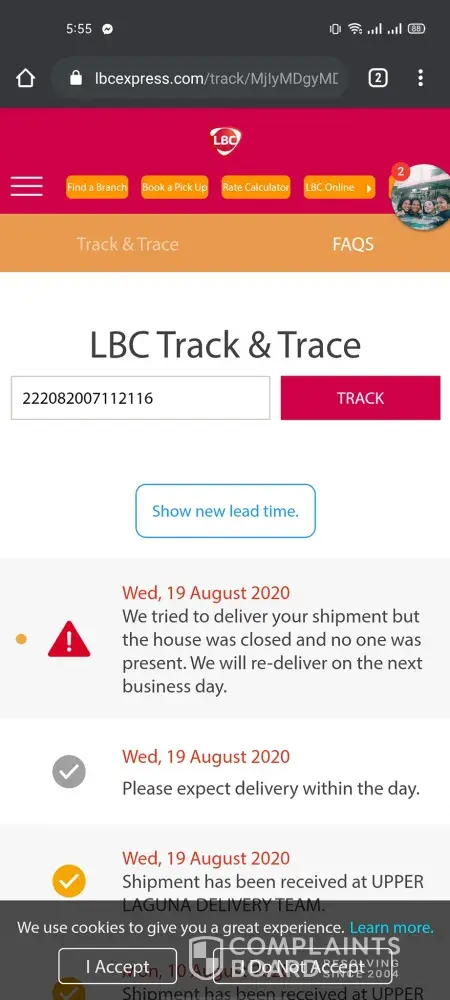 LBCExpress claimed that they have made attempts to deliver my purchases and that I wasn't present to receive them, when as a matter of fact I was (and still am) and they failed to get in touch with me. I even doubt they actually made the attempt to make the delivery. I'll understand if the delivery is delayed because of the quarantine, but I won't stand for false information. Their customer service is also deplorable: not responsive online and no one picking up the phone. Other courrier services have no trouble getting my purchases to me, so what's LBC's excuse?