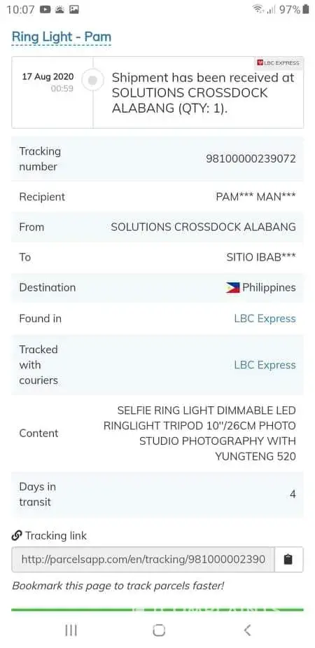July 30, 2020 received parcel at San Isidro Nueva ecija (wrong destination)