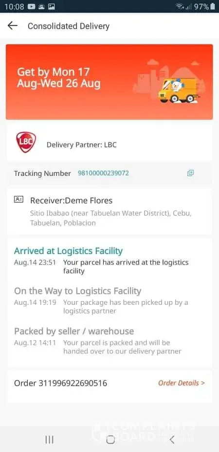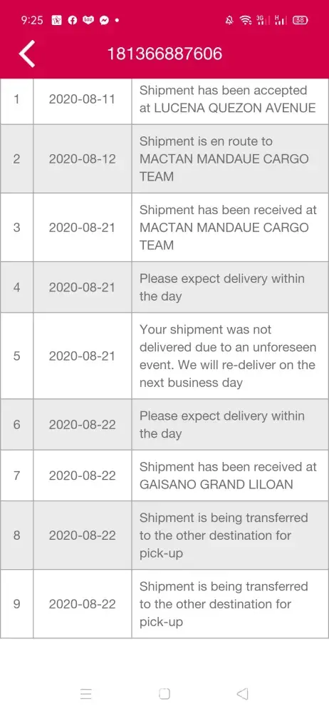 Lazada merchant shipped the item last Aug 4. The item sat on Alabang for more than a week, then in Cainta for more than 4 days already. The item purchased is an infrared stove for our new house in Rizal. Much to my dismay, we are not able to cook anything for the past weeks, waiting for this paid item to be delivered. Facebook support only responded to two of my messages telling me it was possible to be delivered last week. I waited till Saturday but to no avail. No one responded me after multiple follow-ups even on email.