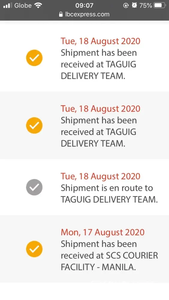 Ka-lbc, your shipment with tracking# [protected] was received by jean on 08-22-2020. Thank you for trusting lbc!