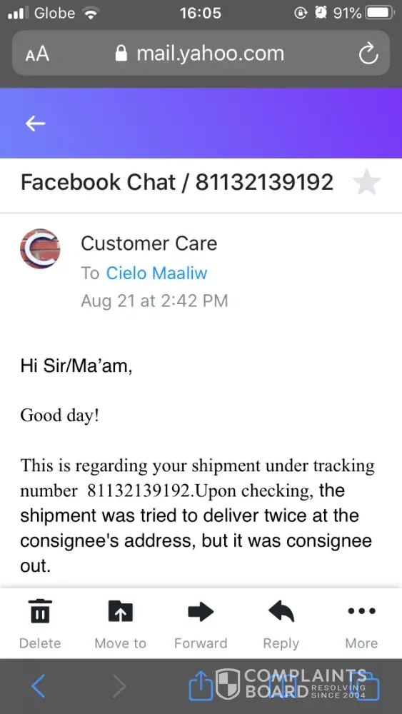 Complaint for item delivery service.