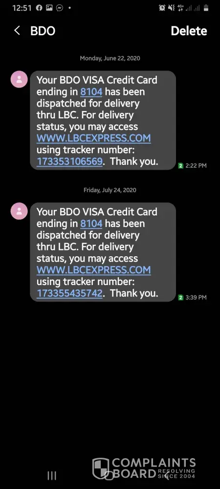 June 22, 2020 BDO texted me for delivery of my credit card..i'm waiting whole day but lbc did not deliver the card so they return the card bdo status is scs returns. Yesterday july 24, 2020 texted again that my card is on delivery. Im waiting whole day. I checked the tracking number in their website it said that expect delivery within a day! I chat with the customer service of lbc if it is okay to pick up my card on their delivery hub. CS say yes so i went there but unfortunately the card return to BDO. LBC is liar! I hope they can deliver my card! This is my complete address Block 16 Road 32 Planters Floodway Brgy. san Andres cainta rizal. This is my contact number [protected].