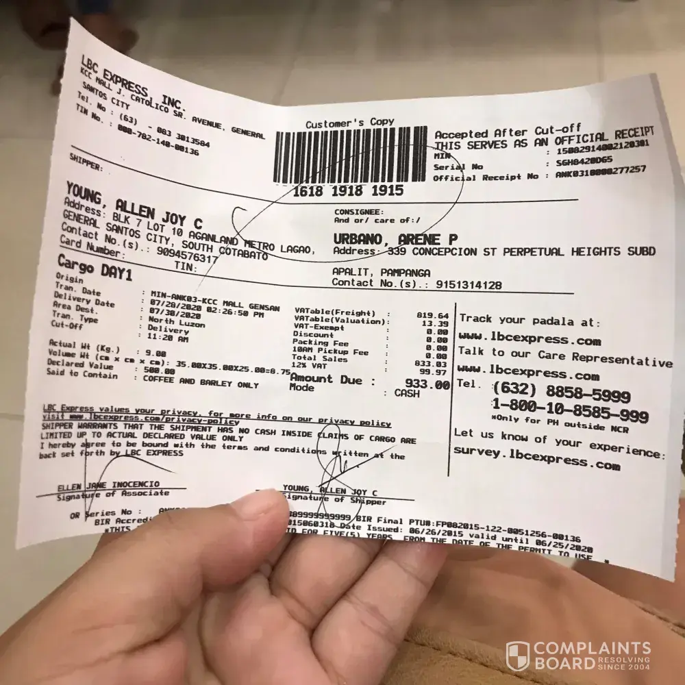 Too long! My god! Tinatambak lang ng lbc upper laguna team sa warehouse nila! Please do something about this! Mula noon hanggang ngayon bulok pa rin upper laguna lbc team!