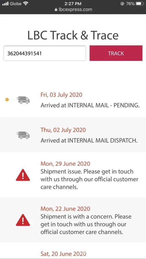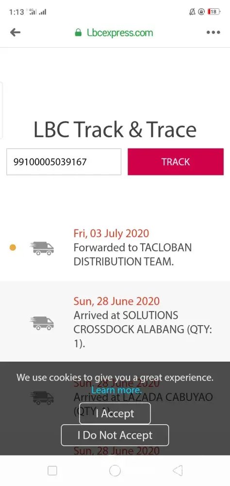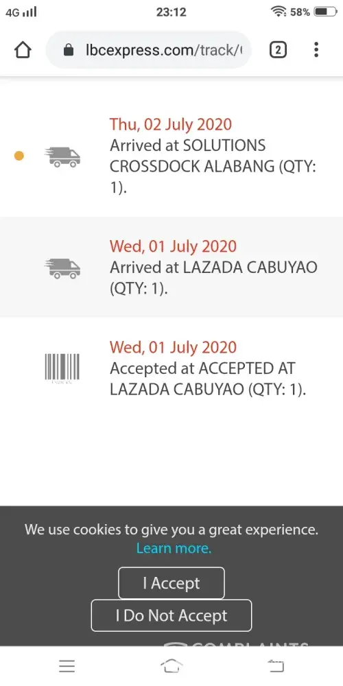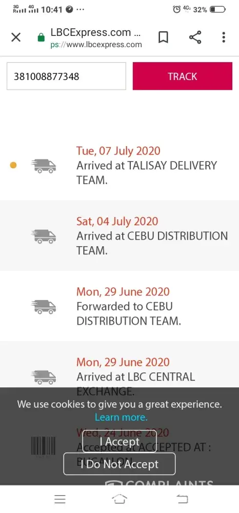 My seller sent the package on LBC NUEVA, SAN PEDRO branch dated July 7, 2020 that i've bought to be delivered here in lian batangas. It was arrived at the VCARGO EXCHANGE on july 8, 2020 Until now, 5 days later the tracking is still not updated, I have already followed up via messenger, facebook and email regarding my package but I have not received any reply except from their automated bot replies which fail to provide any substantial info as to where my package is. When is my package being delivered? I really need it right now.