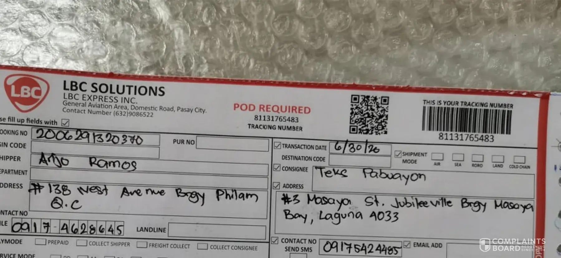 June 30 when the item arrived at LBC Kalayaan and was ready for delivery. Based on the tracking information, there were two remarks that the address was not found reason for the item to be undelivered.