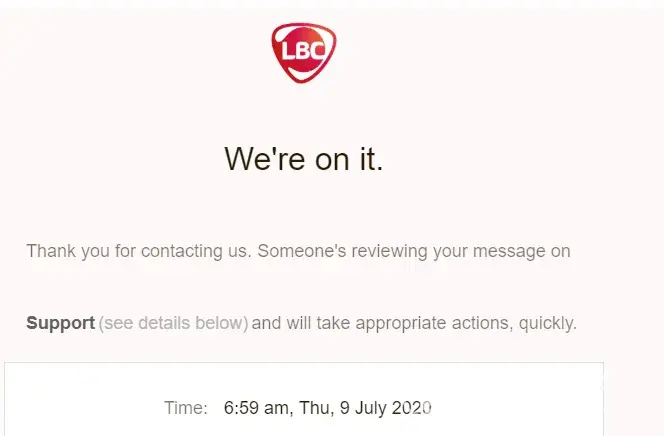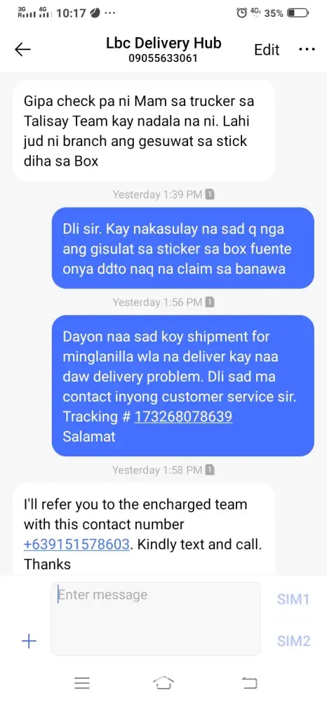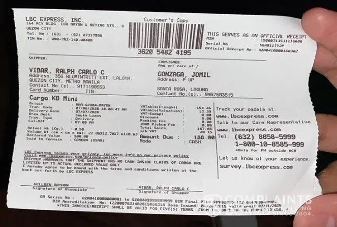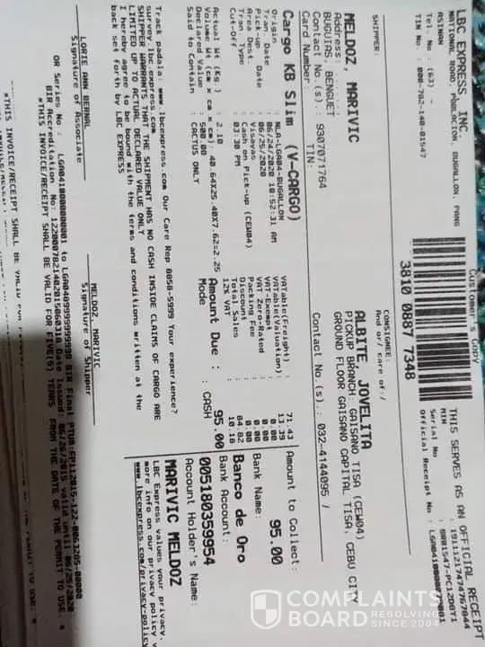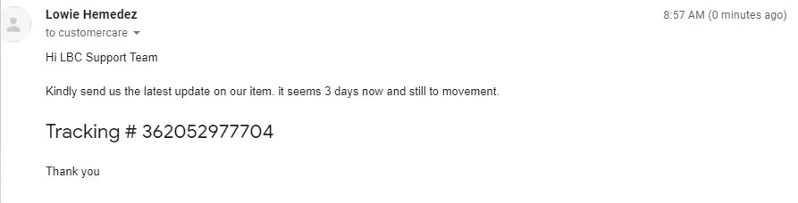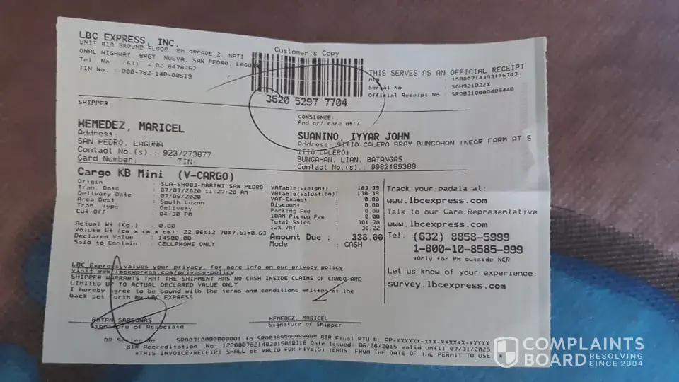 I believe that through LBC, I can assure that my delivery will be handled well to the recipient with extra care. And we seek for your assistance on how you can help us regarding this incident and prove us that LBC is worthy over other express delivery company.