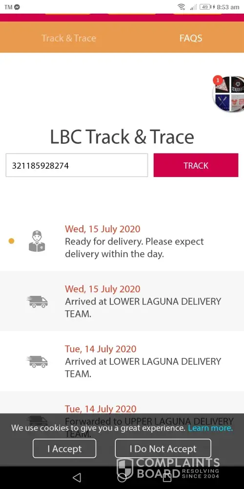 My package [protected] was sent from Manila to Laguna last June 30, 2020. It was received at the LBC Central Exchange last July 1. Until now, 6 days later, I have not received my package and it has not moved from the sortation center. I have already followed up via messenger, facebook, twitter and email regarding my package but I have not received any reply except from their automated bot replies which fail to provide any substantial info as to where my package is. When is my package being delivered? They claim it takes only 3-6 days for provincial deliveries. Tomorrow is one week already and still no package.