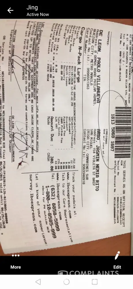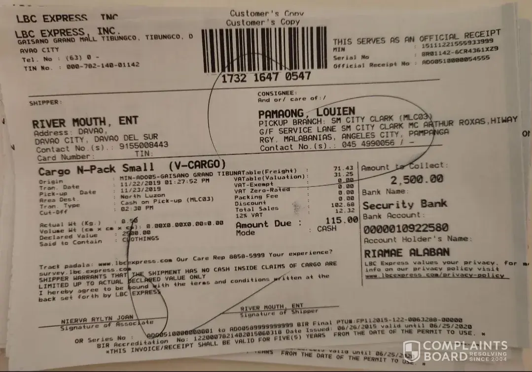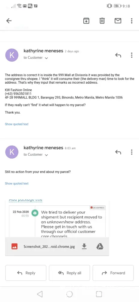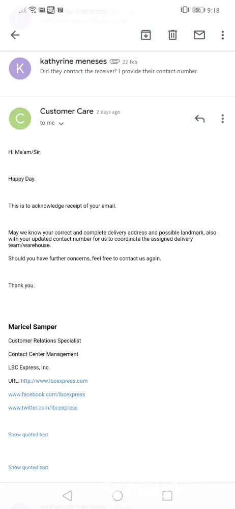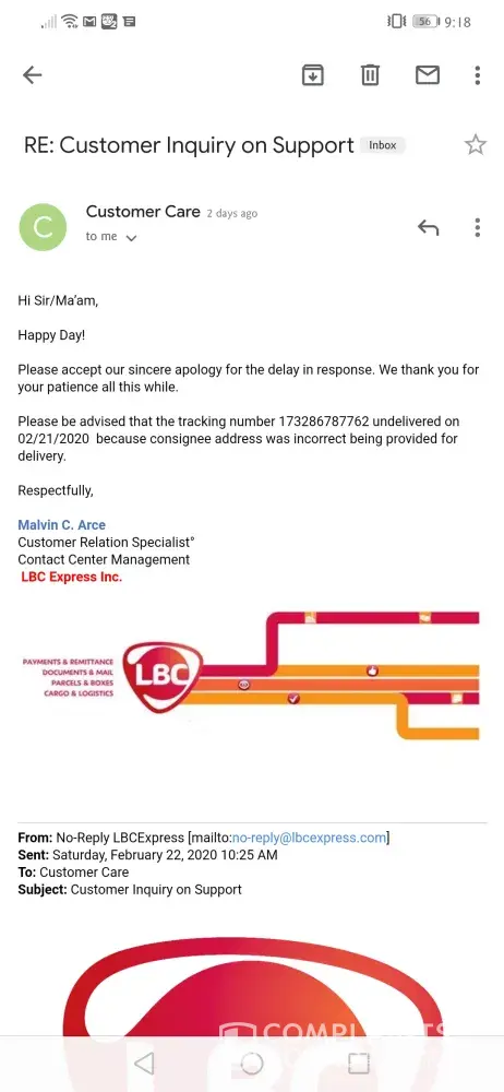 undelivered package and lbc mabalacat pampanga staff not responding to emails