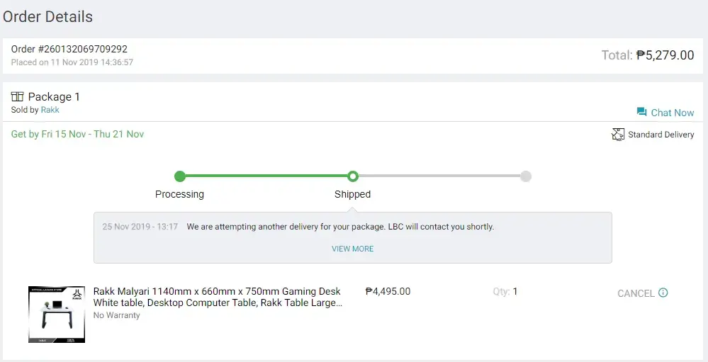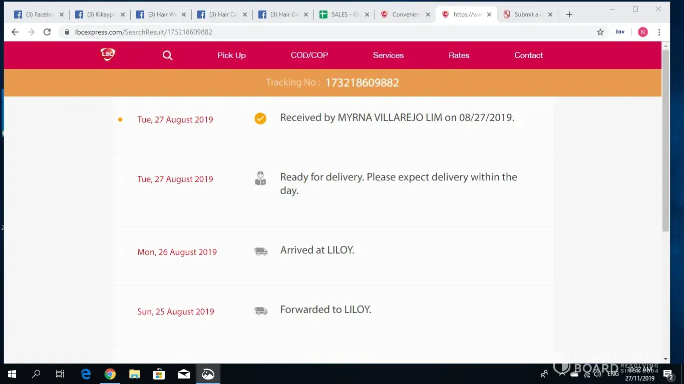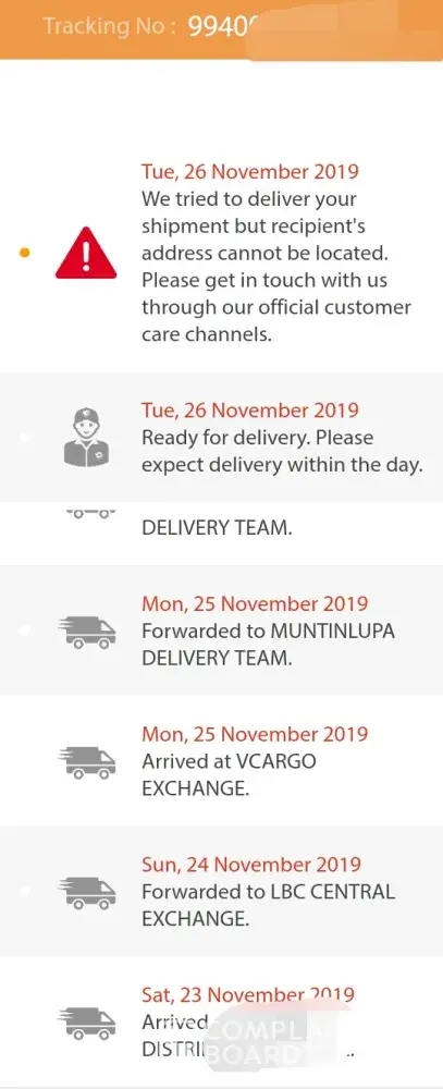Hi Would like to file a complaint about LBC express inc. Order tracking number is [protected]. The package was due to be delivered to me on 21 November 2019. However, current date is already 26 November 2019 and still the customer care is saying they can not deliver. The date of order on Lazada was on November 11, 2019. Thats half a month delayed delivery for a local delivery. 1814 Brio Tower Makati City