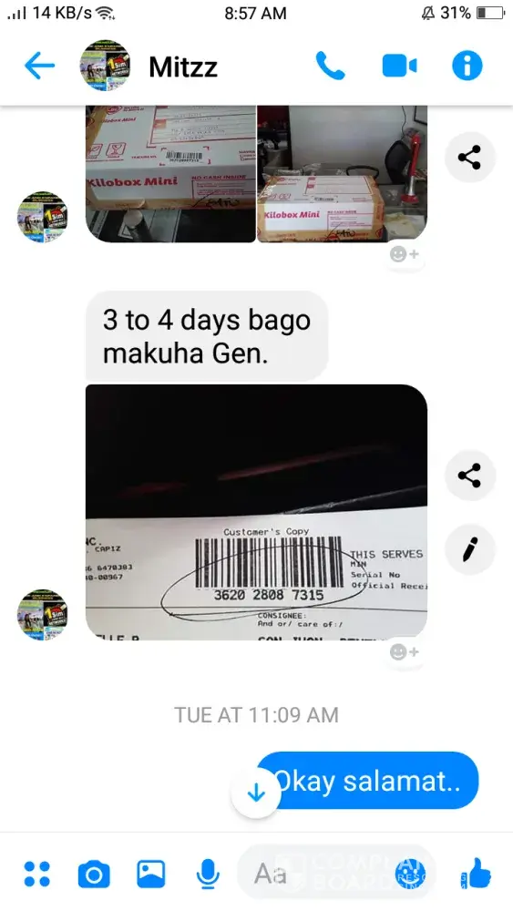 sender Joanna F. Bicas sabi sakin 11am out for delivery na pero wla pa dumating