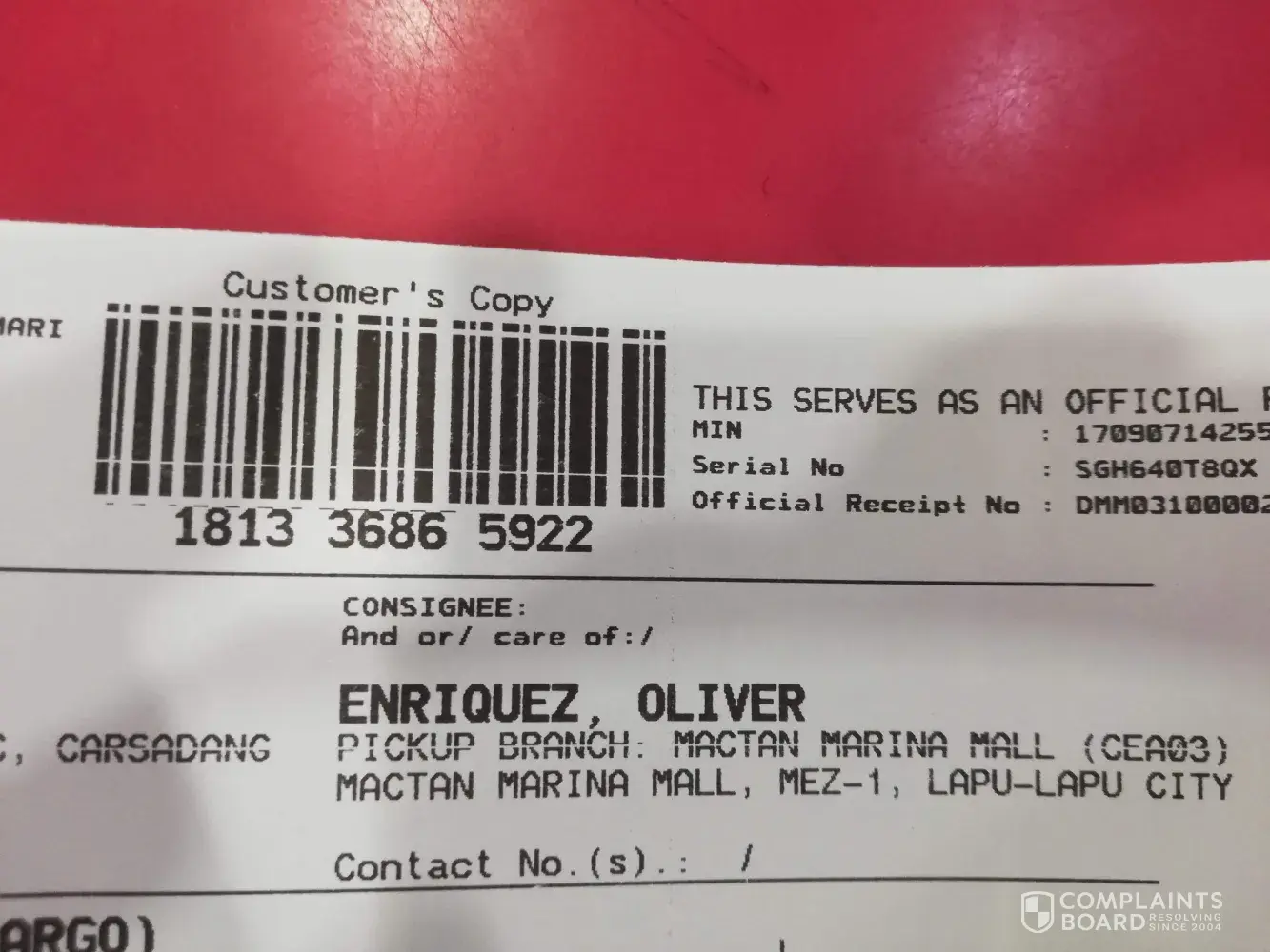 I was at this branch today at exactly 5:00PM with my 2yr old daughter for sending package/returning item to lazada. As hours pass by after 1 & half hour of waiting this female staff told me that she couldn't grant my transaction because it was already 6:50pm and the branch is about to close, so i ask her why she told me about the time policy so late? If she could tell me earlier than 7pm the costumers will understand it and to avoid trouble as well you know She start yelling at me blaming the guy who was her working partner in this branch and kept shouting that she couldn'y grant it because she is not the one who assisted me? I dont think this woman having her training before she worked this branch i dont know her name but i took a picture to send the complain. Please do an action she really don't know how to handle costumers and she terrible to the costumers.