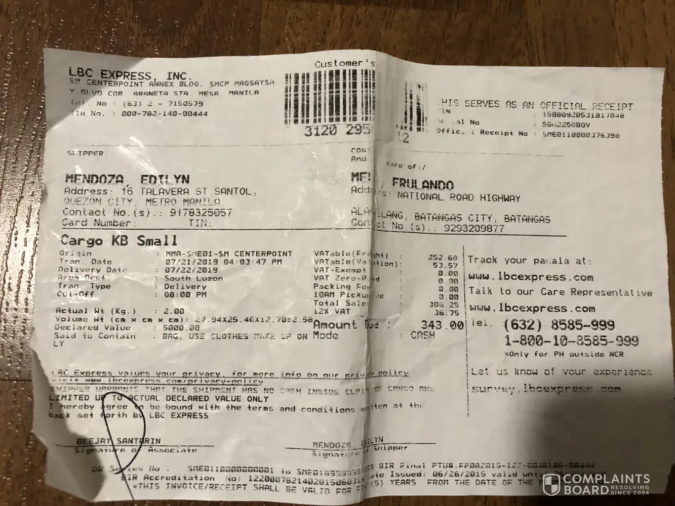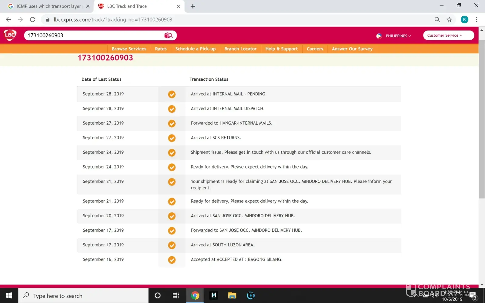 Last September 15, 2019 Nagpunta ako ng LBC Robinsons Antipolo para magpadala ng parcel para sa friend ko na taga antipolo lang din. Sep 19 nag inform ang friend ko na wala pa daw syang narereceive na parcel. Tumawag ako sa customer service ng LBC Sep 20 ang sabi sa akin ng customer service hindi daw nalocate ang address ng padadalhan ng parcel kaya ang sabi ko kung pwedeng ipatransfer nalang sa Licos Branch ng LBC para don nalang ipick up ng friend ko, Ang sabi sa akin ng customer service nagawan nya na daw ng report at ipick up nya nalang sa monday Sep 23, Pinapunta ko ang friend ko ng monday wala pa rin daw don ang parcel. Sep 25 (Wednesday) Tumawag ulit ako sa customer service at nakausap ko si Sarah Padilla ang sabi nya sa akin hindi daw nagawan ng report kaya hindi naideliver nagrequest ulit ako sa kanya na kung pwede ipatransfer nalang sa Licos Branch para mas madali sa friend ko na makuha ang sabi nya sa akin by friday daw darating sa Licos branch ang parcel ko kaya pinapunta ko ulit ang friend ko nung friday sep 27 ang sabi sa kanya wala pa rin daw pang 8days na daw ng parcel ko kapag umabot daw ng 10 days dadalhin na sa pasay at ako daw ang magbabayad ng penalty, Which is hindi ko naman kasalanan na hindi nila na transfer ang parcel ko dalhil nagrequest agad ako na ipatransfer nalang. Tumawag unit ako sa customer service sep 30 ang sabi nasa pasay na daw ang parcel at ako daw dapat ang magpunta sa LBC robinsons antipolo para iconcern ang tungkol sa parcel ko. Kaya ko nga pinadala ang parcel kasi wala akong time napadaan lang ako sa LBC robinsons nung sep 15 kasi may binili kami sa mall kaya don ko nalang pinadala tapos ganun lang pala ang mangyayari?antipolo lang din ang area na padadalhan pero umabot ng 16 days wala pa rin ang parcel ko? bakit pa sila ng hingi ng contact number ko at ng magrereceive kung hindi rin naman pala tatawagan kung ano na ang nangyari sa parcel ko. Sana naman magawan ng paraan yan kasi sobrang tagal na talaga, Busy ako sa work kaya wala akong time para puntahan pa yan sa LBC robinsons antipolo sayang ang araw kung mag aabsent lang ako para dyan na hindi ko naman kasalanan.