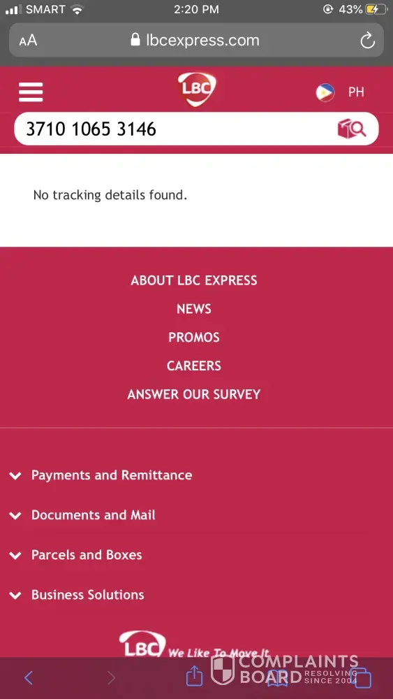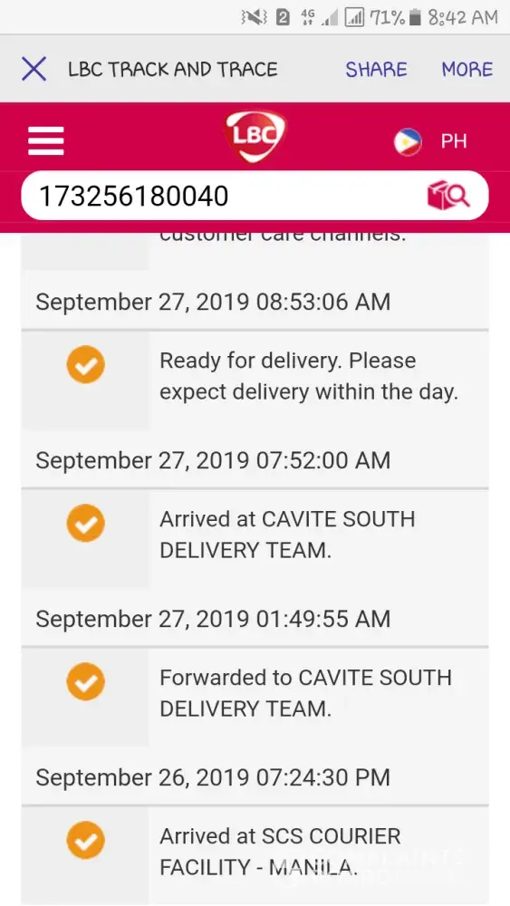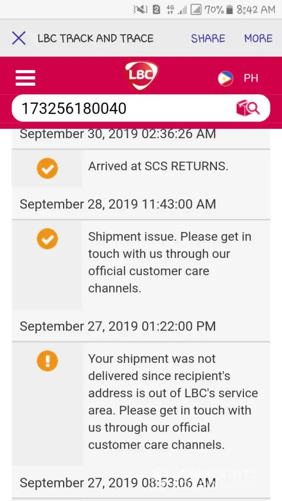 This is to ask your assistance with regard to my undelivered parcel. However, tracking report says it was "delivered" on 2nd of September. No one received the parcel on that date on my address. I already reported the incident to LBC Arcadia Paseo branch (they reported the incident to lower hub through email) and I have contacted the contact person at LBC Lower Hub Cabuyao. Despite all the effort, it concerns me because it seemed that they do nothing with my complaint. I hope you'll be able to address my concern immediately.