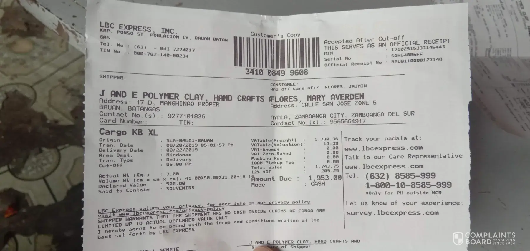[protected] this is my tracking number for a shipment from a souvenier supplier from batangas to zamboanga city. The box was accepted at Bauan on August 20. The shipment was expected to arrived earliest 23 or 24 as verbalized by LBC staff. However, up until now the current update was still received at zamboanga distribution team and still has not arrived in zamboanga city. The wedding date was August 24. This is air cargo shipment..but 4-5 days still has not arrived. I am complaining for the delay of shipment, making it useless when it will arrived as the wedding has long been over. This is clearly a reflection of your poor service LBC! You just ruined a part of my wedding!