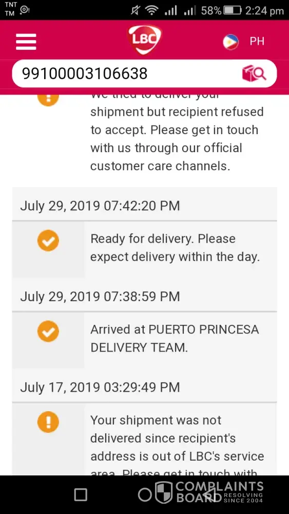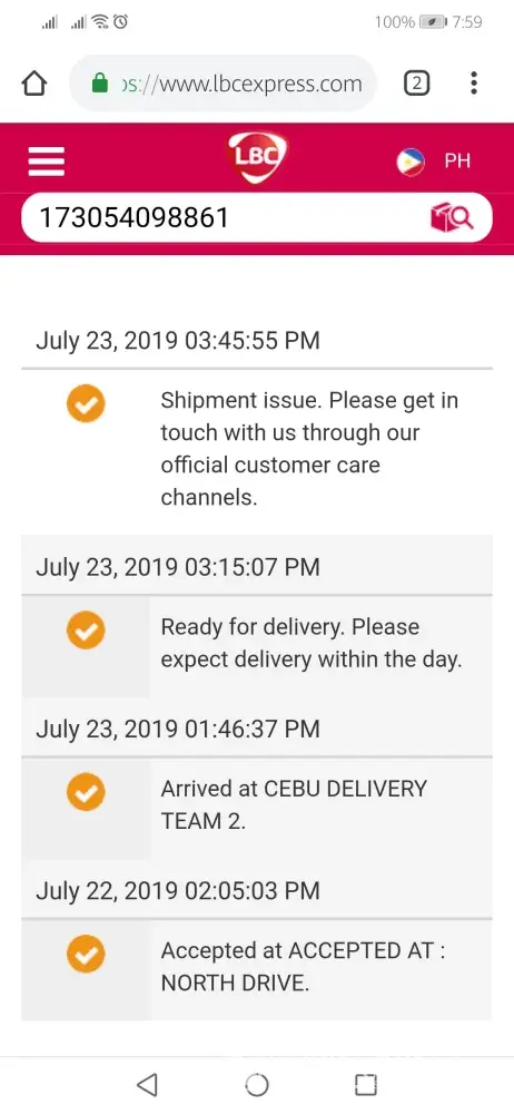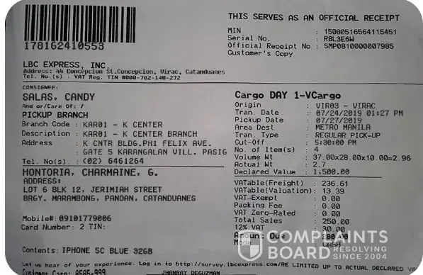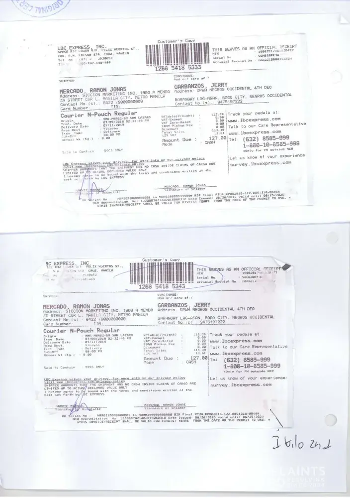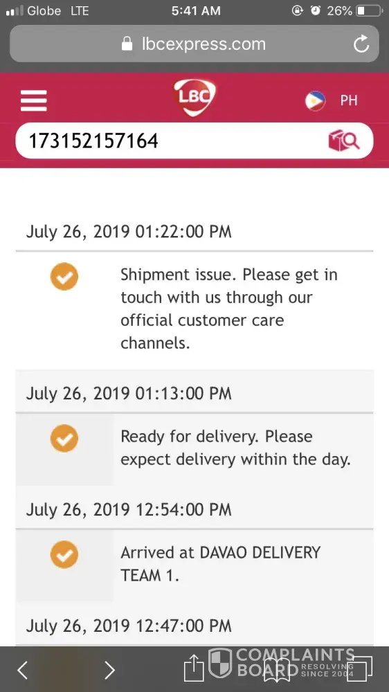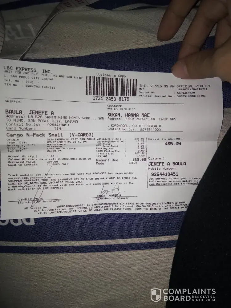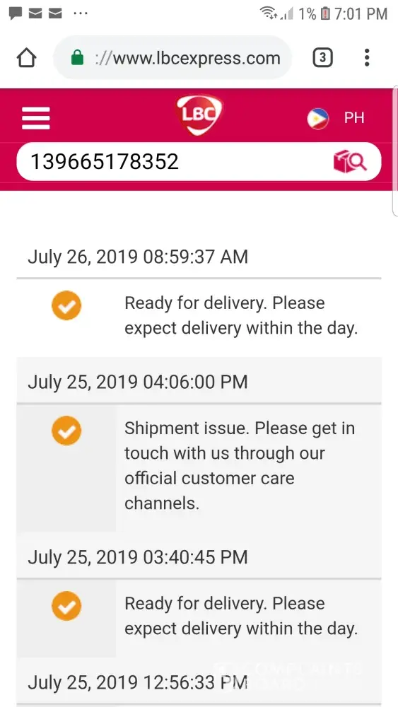 shipment issue by lbc express