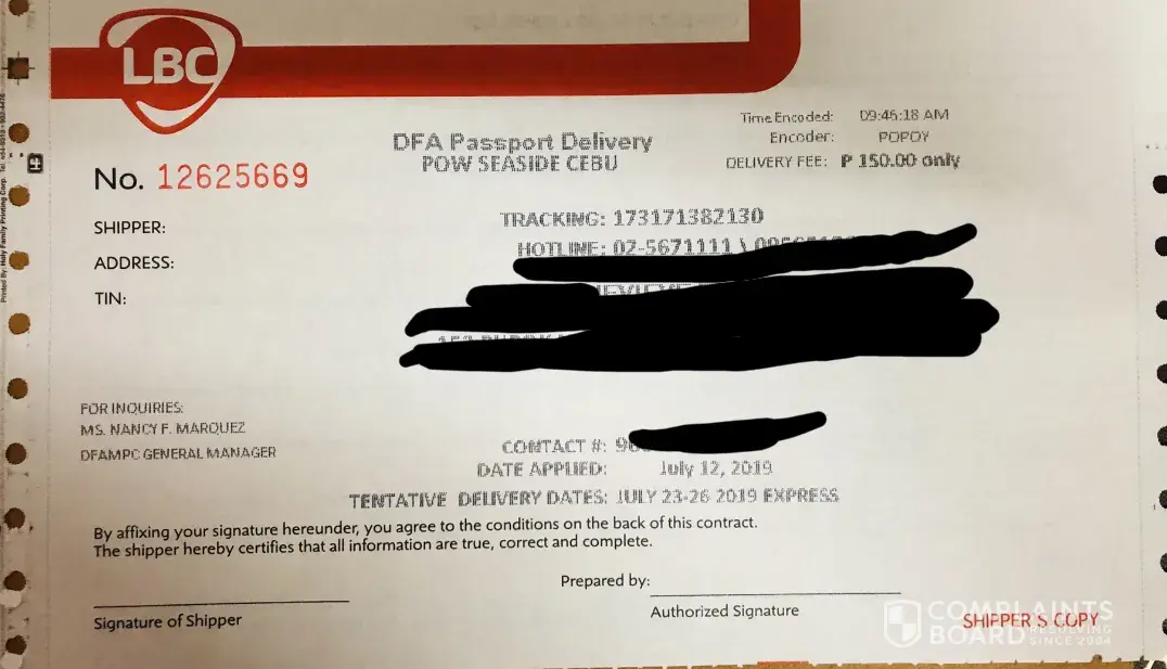 I have been expecting my passport to be delivered on the tentative dates DFA provided. The tentative delivery dates are from July 23-26. I called DFA Manila and Cebu and someone from DFA Cebu told me that my passport arrived yesterday, July 23 in LBC but why is it that until now, I can't track it online? I need my passport before Friday since I have an appointment for visa application scheduled on the said day. Please don't let us wait too long. We paid you. Supposed to be my passport should have arrived by today.