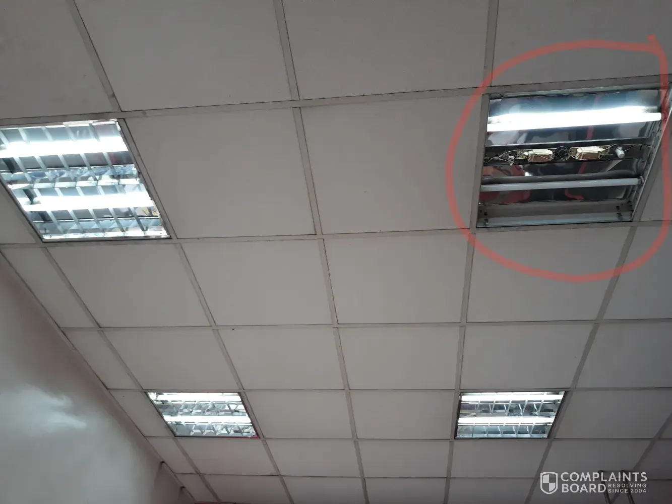 I was there to have two CD's delivered and while waiting for the staff to process my parcel, the ceiling/flourescent light metal cover (pictures attached for reference) detached and fell straight to my head. Shocked, I then said "putang ina, ayusin nyo yan!" amongst a few other words as a result of my frustration, disbelief and anger toward the incident.