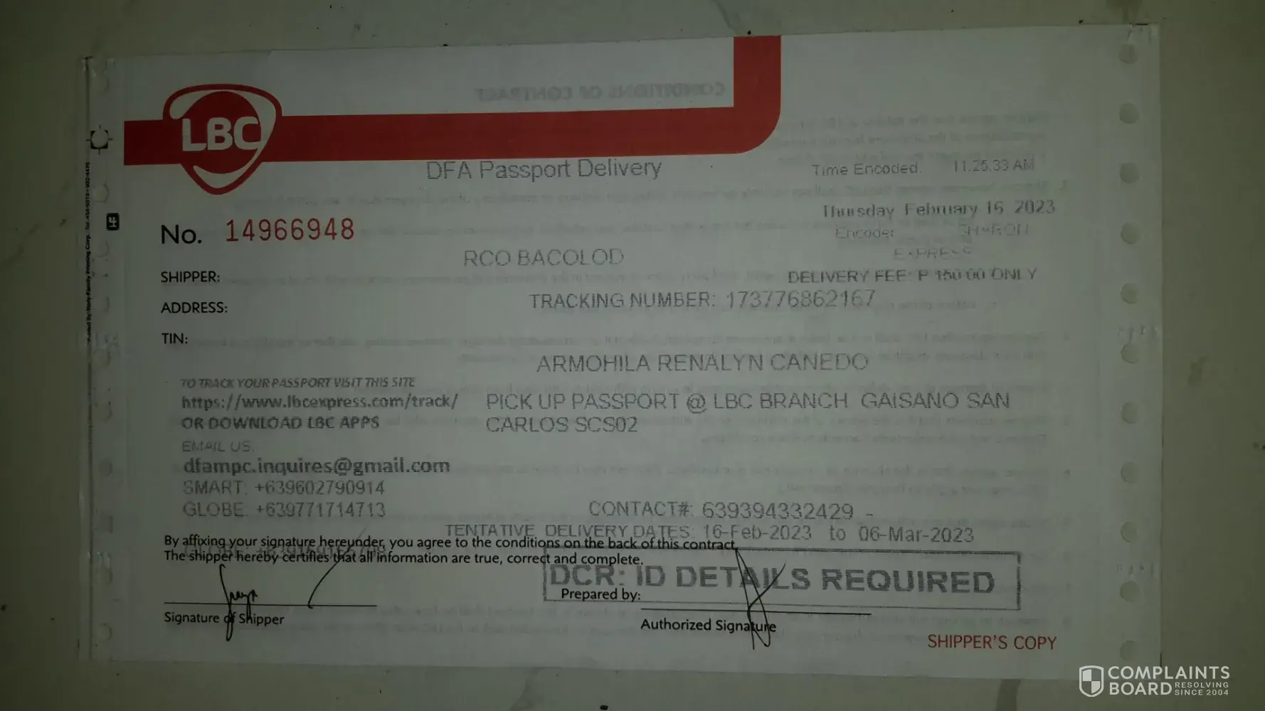 Hi Renalyn C. Armohila, this is from LBC Express. This is regarding po sa inyong posted concern.First our apologies for the inconvenience this has caused you. Allow us to help po, the passport transaction receipt is valid po. The latest status today is in transit bound to San Carlos delivery team and the possible update is ready for pick-up is on or before March 2/March 3. For fast response and better assistance po maaari po kayo mag direct comment sa aming LBC official channels below. Thank you. -Cha
