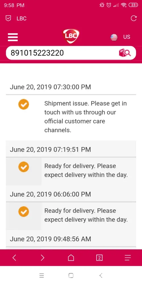 GOOD DAY! I'm Donnavie Mesa of Tacloban city my contact number is [protected], I was expecting my parcel to be delivered last June 22, 2019 but until now I haven't received it yet. I tried to track it using the reference number provided in the text message of LBC express but the parcel now is already returned to LBC x logistics due to the delivery issue according to your customer service representative. That according to the courier that I have no have available cash during his attempt of delivery, which is I think a lie because in the first place I will not order that item if I don't have the capacity of paying it and there is no LBC courier appear on my doorstep up to now. And what's worse is that I was told that I should contact the shipper. I think you should be the one to return that parcel and have it delivered to me because it is not my fault in the first place.