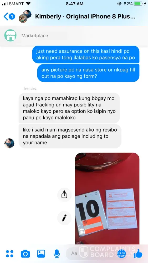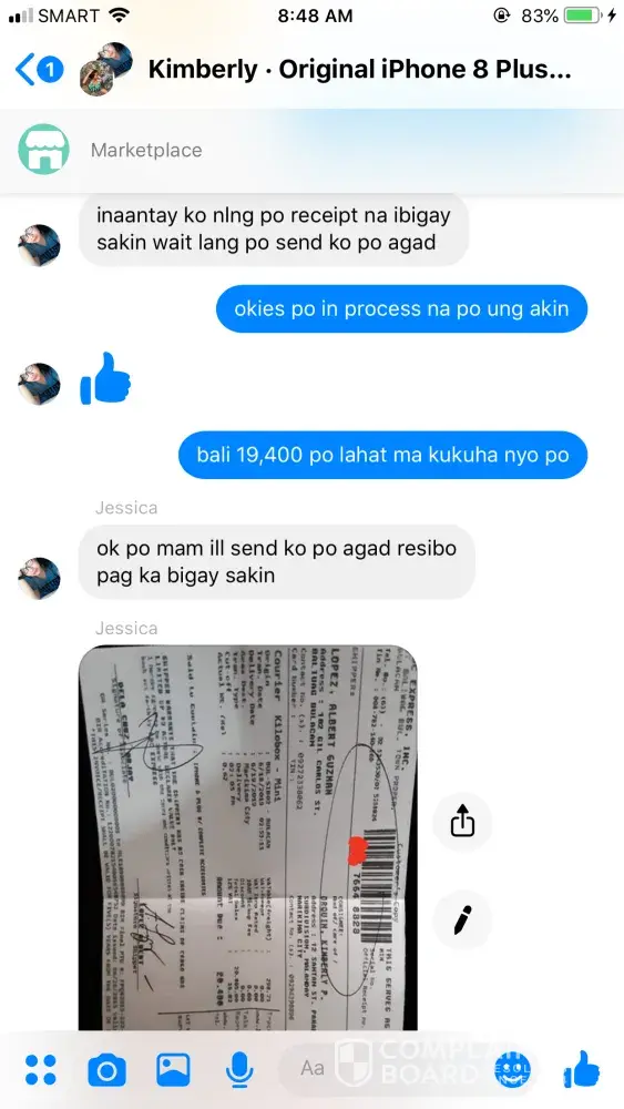 June 18, 2019, I made a transaction through LBC (pera padala). It's suppose to be a payment for an Iphone 8 plus buy the seller/scammer who's name is "Jessica V. Lopez" but using "Albert Lopez" as the recipient of the payment. We both agree that day to send a picture of the receipt as a proof. I shade the part of my tracking number so he/she can't use it to encash the money. The day after we transact I didn't receive any updates nor I can call the phone number he/she provided [protected]). Then, Thursday June 20, I went to the store where I remit the money and found out that it was already encashed.
