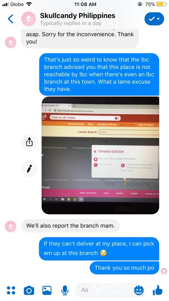 I purchased an item online and the seller tried to ship it via LBC yesterday, June 25, 2019 at Ayala Malls Marikina Branch. The branch told the seller that my place is not reachable by LBC when in fact, the town where live in even has an LBC branch. I've been availing services from LBC since (may it be product shipment or money transfer) and this is the first time that I was told that my place is not reachable by LBC. This caused a delay on my order and their lame excuse is so unacceptable. Can you please let the staff in that branch know that they are not doing their job very well? I thought LBC assured a hassle-free transaction. Every LBC staff needs to deliver that assurance to satisfy customers.