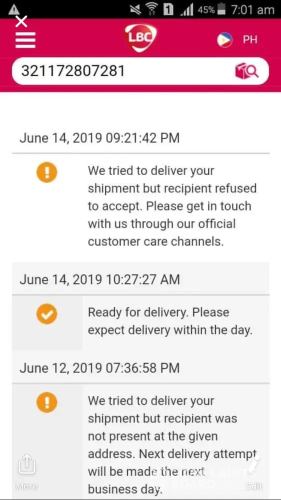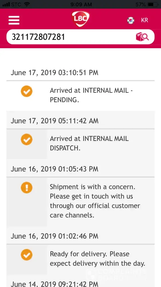 June 7 2019 [protected] What is the concern? Date of Last Status Transaction Status June 21, 2019 Arrived at INTERNAL MAIL DISPATCH. June 20, 2019 Shipment is with a concern. Please get in touch with us through our official customer care channels. June 20, 2019 Ready for delivery. Please expect delivery within the day. June 19, 2019 Your shipment...