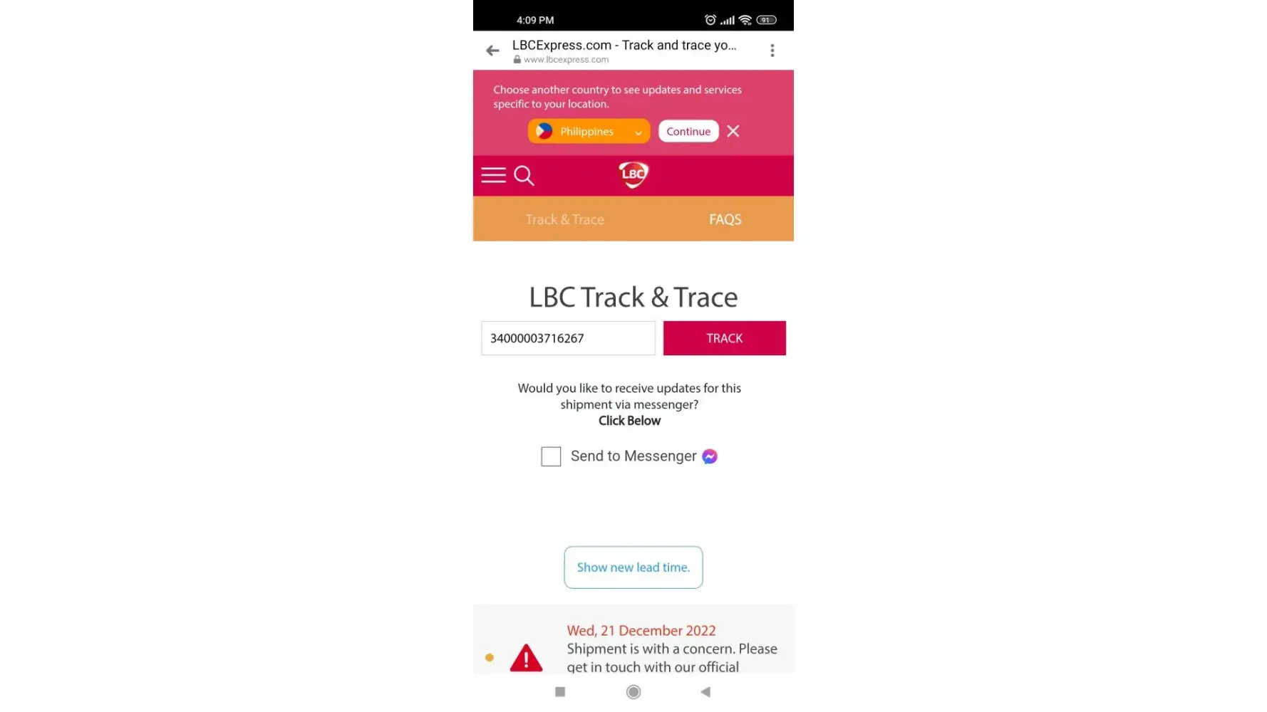 1. When is the repeat delivery of the first one? It is now more than 2 weeks past from the date the LBC delivery courier was in the recipient's address.