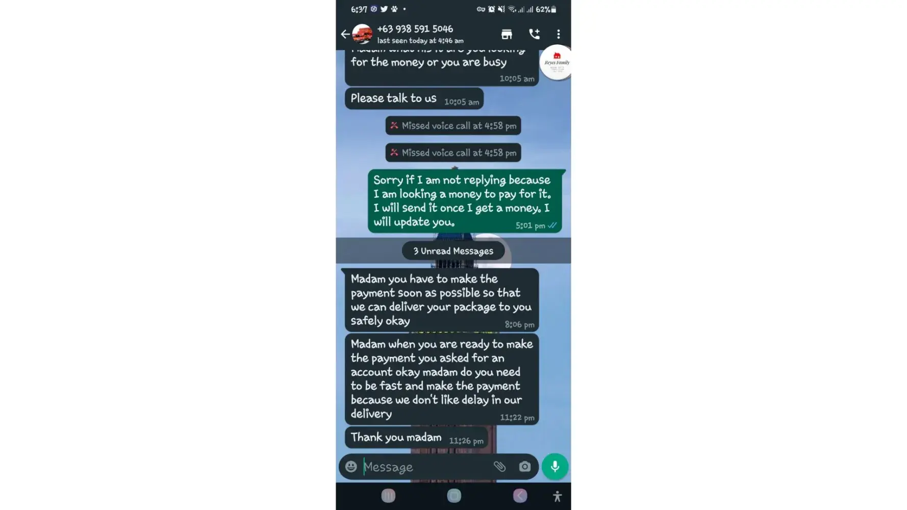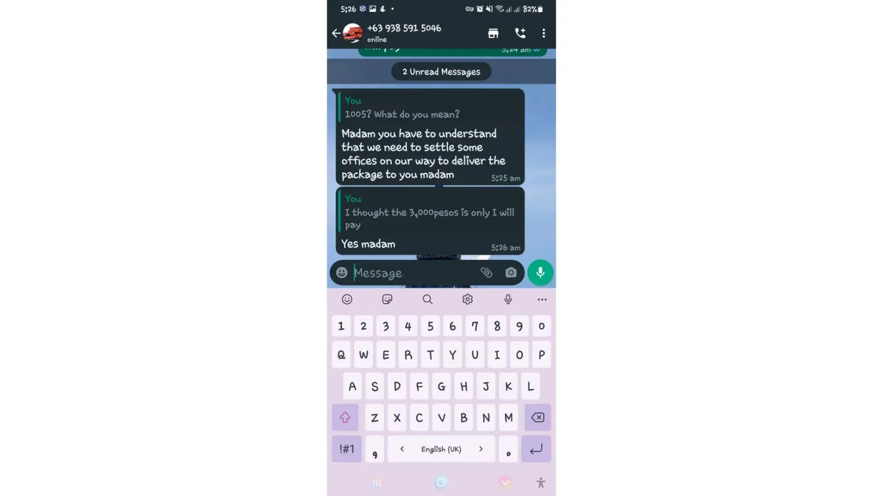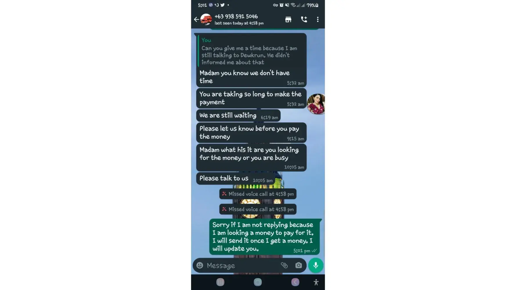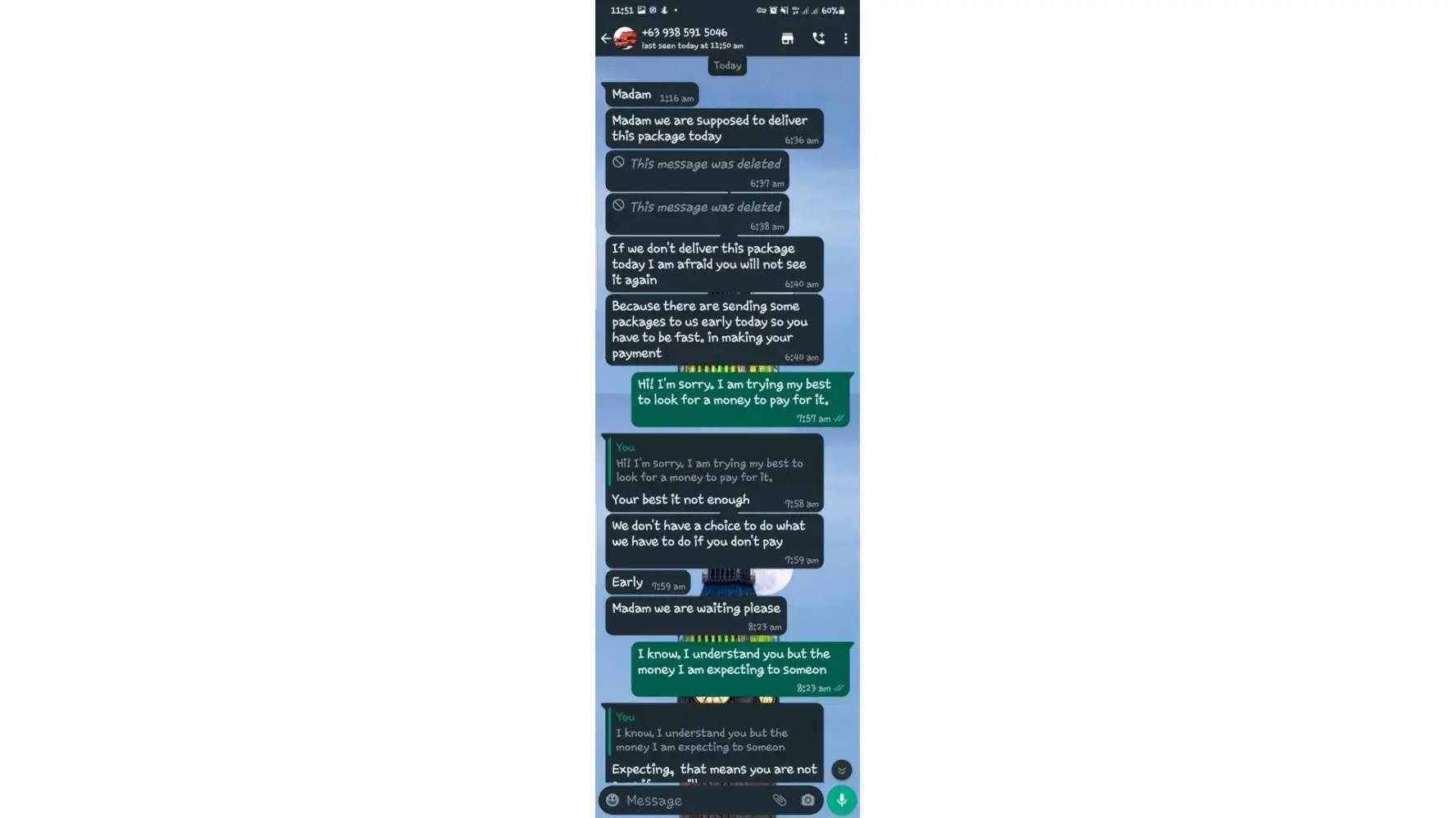 One of lbc agent sent me a message on my whatsapp number telling that my package is already arrived last january 25, 2023 @4:33am and they are asking me to pay the custom clearance worth 3,000pesos immediately. I already paid that last january 27,2023 @8:13pm then last january 28, 2023 @5:15am they sent me a message again they are asking me to pay for the delivery charges for 1,000pesos and they said that is my last payment and they assured it to deliver my package and I find a way just to pay it today, january 31, 2023,@8:47am but they said its not 1,000pesos anymore because I need to pay 2,000pesos now instead of 1,000pesos for the first payment they are asking for just the delivery charges. Until now they are still holding the package they are asking for more money that they want me to pay more its now worth 5,000pesos just to deliver my package they said the delivery man is not going to accept my package just to deliver it again that's why they are demanding for more money so they can deliver it to me. They are scamming me! They gave me a 2 options I need to pay 5,000pesos just for the delivery charges or I will pick it up but they said that I still need to pay them again before they will release my package.