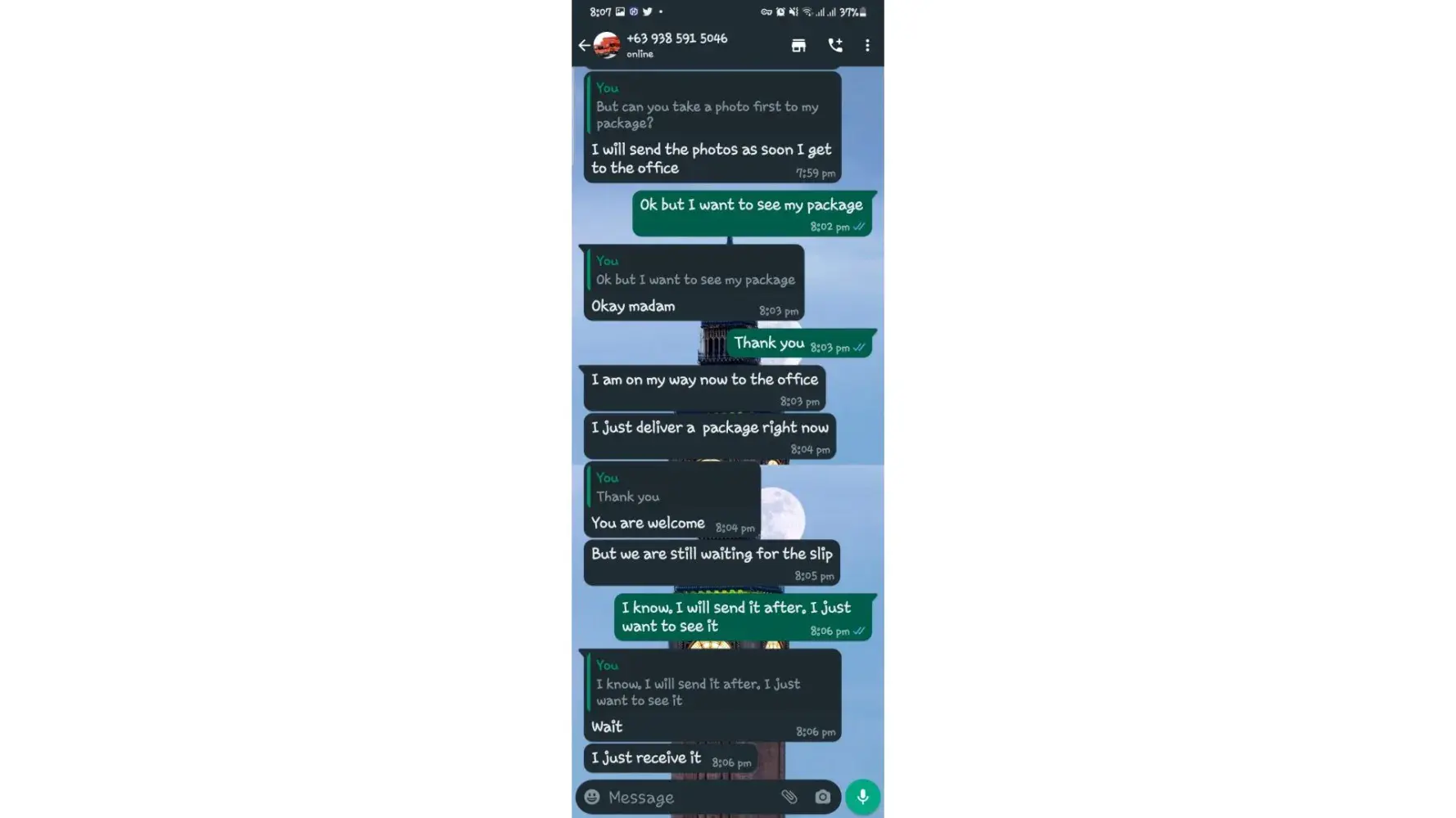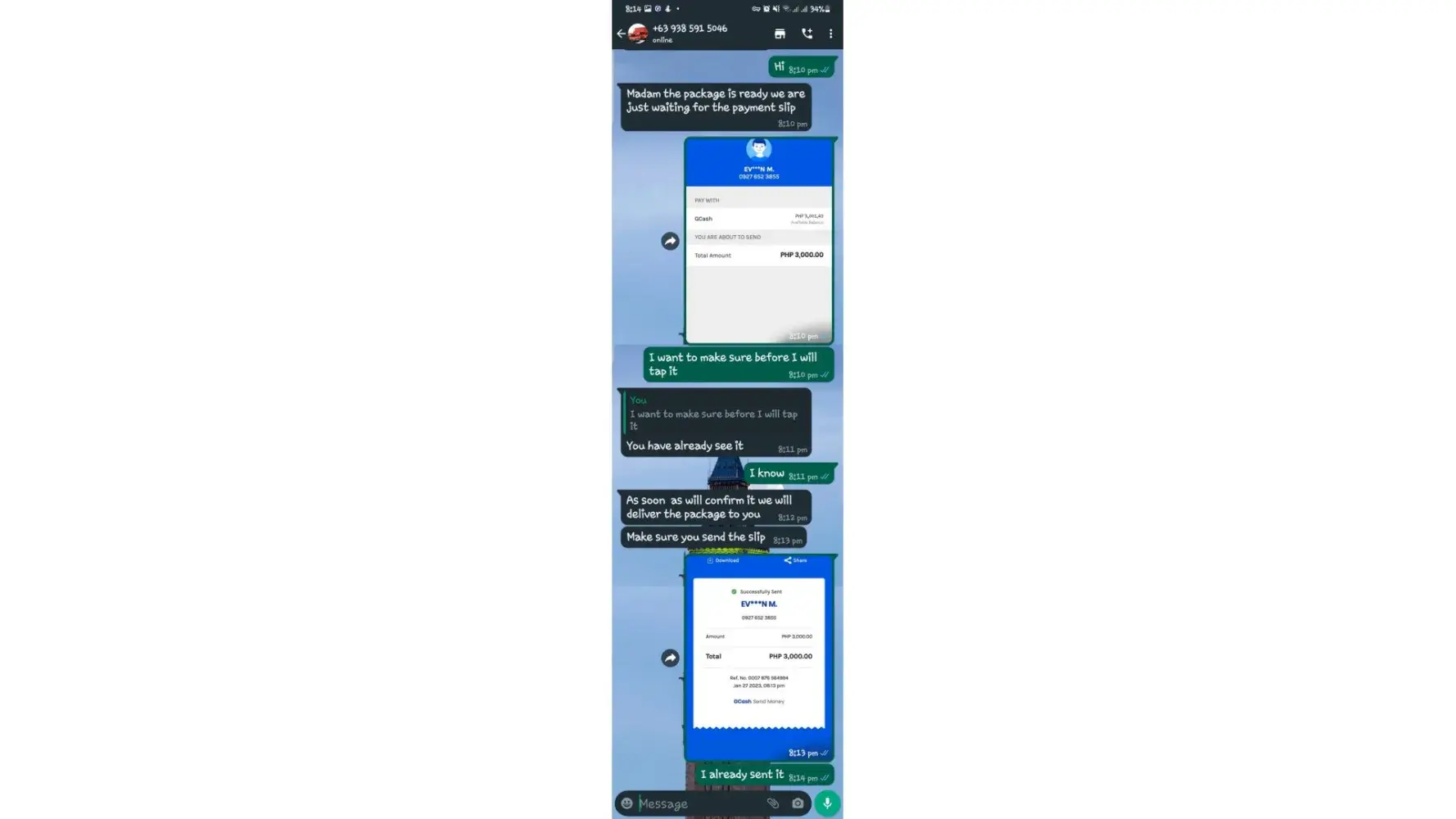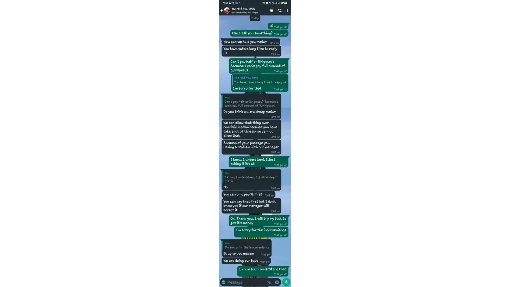 I took a screenshots all our conversations.