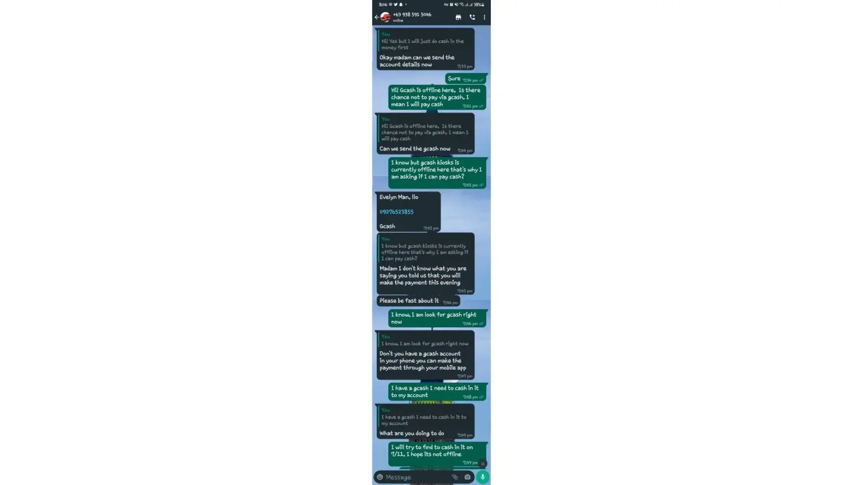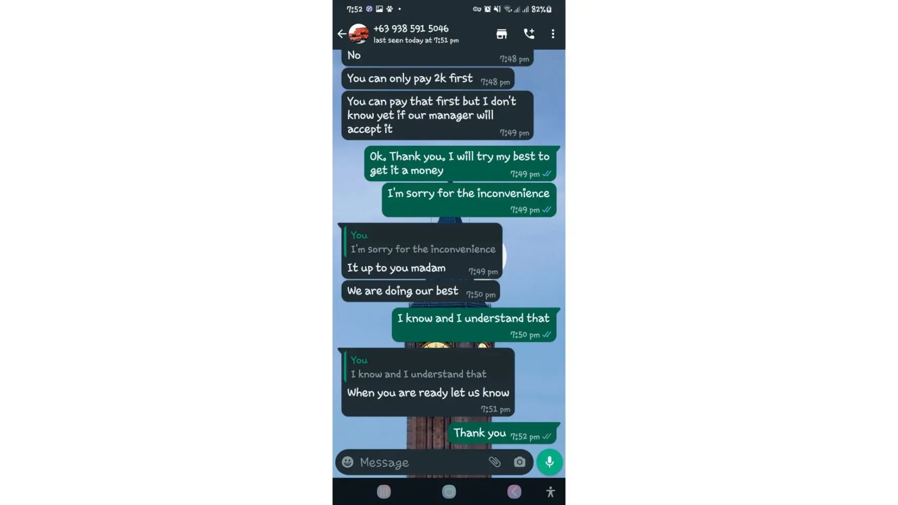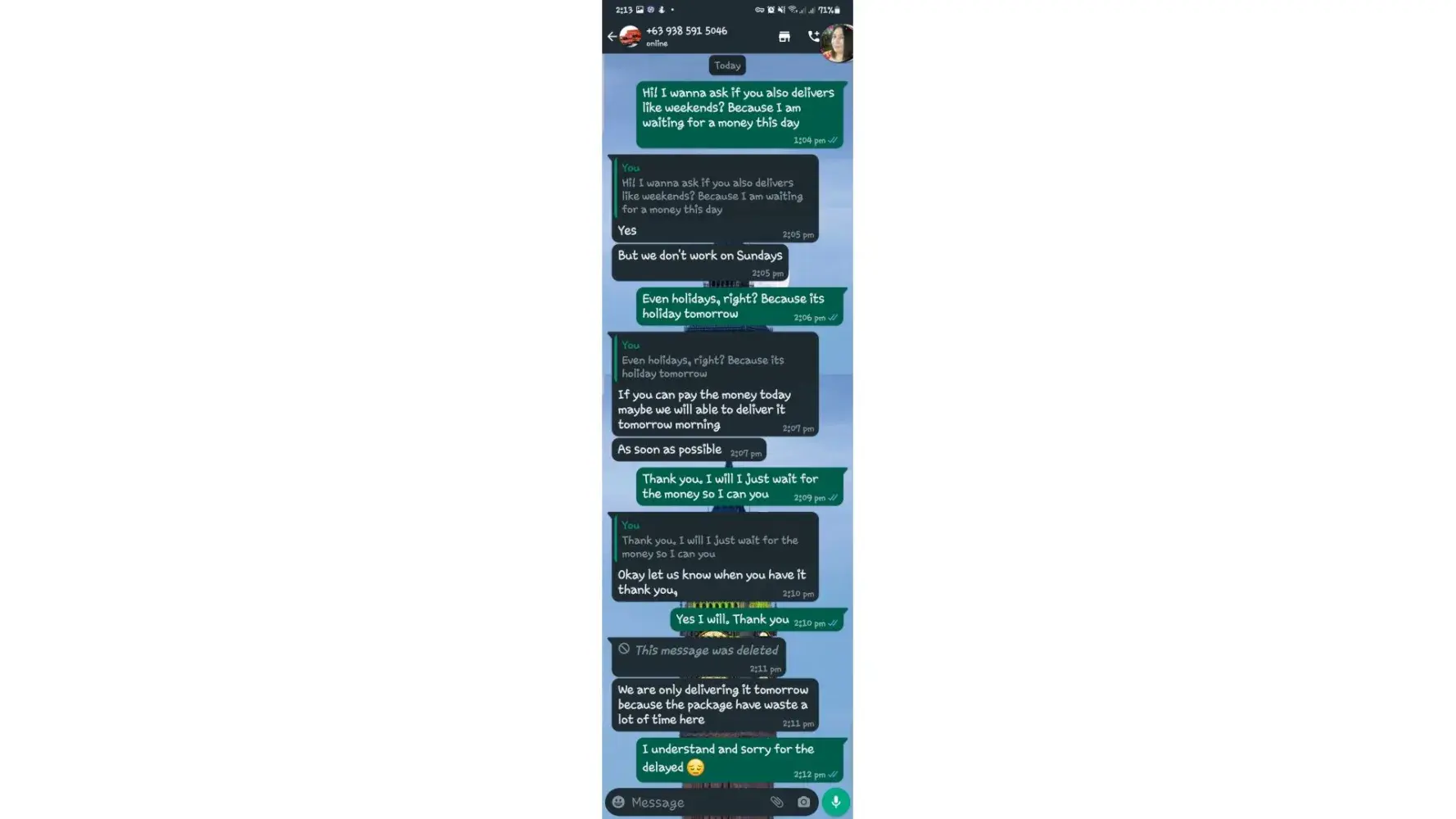 I took a screenshots all our conversations.