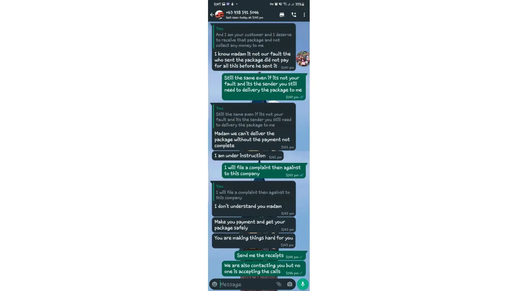 My uncle told me who is working in customs advising to now pay them because if I really need to pay for the delivery charges they need to deliver it first to my home address right after I just paid the custom clearance and they need to deliver it first then pay upon delivery but no because they are asking me pay it. They are still demanding to me that I need to pay again for 5,000pesos.