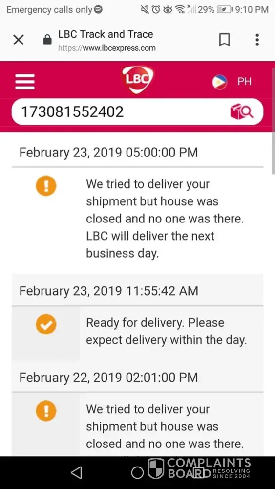 I bought a product online and accdg to the seller it was placed for shipment Feb 21. And it arrived Tarlac (My location) Delivery Hub Feb 22. According to the tracking website, they tried to deliver it the same day, Feb 22 also Feb 23, to our house but it was closed. I am confused about this because there is always someone in our house so I went to LBC Cut-cut branch Mar 1 to report the incident. I was given the number of the delivery hub in Tarlac and told that I was supposed to be the one to call them. I understand if that's the policy but one thing I noticed is that they weren't even apologetic in behalf of their company. Anyways i let that one slip. I called the delivery hub Mar 2 and some girl(I wasn't able to get the name) answered and I told her my issue and they might be delivering my parcel to the wrong address because our house is never empty and she just agreed with me, just to dismiss the converstion I guess and told me that they will deliver it Mar 3 monday. I was also told to keep tabs on my fone that day for delivery updates. I waited all day on Mar 3. No text, no call. When I tried to call the number again, it was unattended. I mean, how unprofessional is that? Mar 15 I went to another LBC branch, the one in City Walk, Zamora St. San Vicente, Tarlac City, to again raise my concern. I was entertained by a certain Janine Soriano and colleague I wasn't able to get the name. They did the same process as the other LBC branch I went to earlier and gave me another number of the delivery hub. I am a little irritated this time because my parcel is more than 2 weeks late so I asked them if it could be changed for branch pickup instead and if they can be the one to contact the delivery hub because in the first place it is the company's lapses . And I was told, rather unpolitely and dissmissively, by janine's colleague that it is not in their authority to do that and if that's what I want I should have chosen that option in the first place to make sure I get my package. They don't even recommend the companies services themselves. And, how rude is that? I am the victim here of delayed shipping and I am being blamed on not choosing for pick up option? I am a very patient person and I should have understood and respected their policy if they have expalained it in a nice way, this is even my first time to file a formal complaint. I hope the management can do something about this and I hope I can receive my parcel which is ALMOST 3 WEEKS LATE the soonest possible.