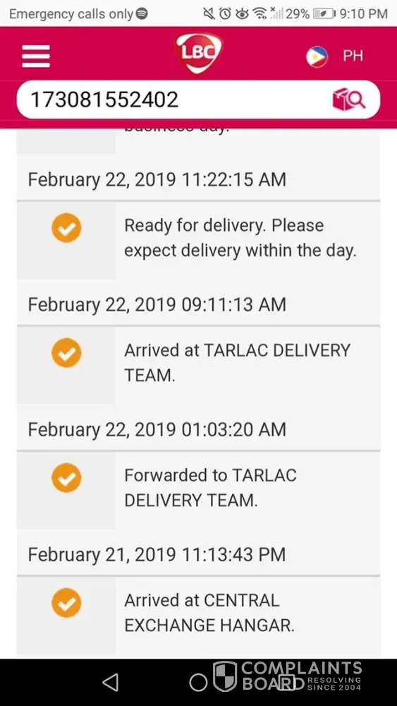 I am a business man and I own an online shop and LBC is the only shipping company that I can trust(sana). I sent a shipment last 02/19/21019 and from time to time the delivery status is lack of time or lack of manpower. I need this shipment to be delivered as soon as possible or else I am going to sue you for lost or revenue. tracking number:[protected]