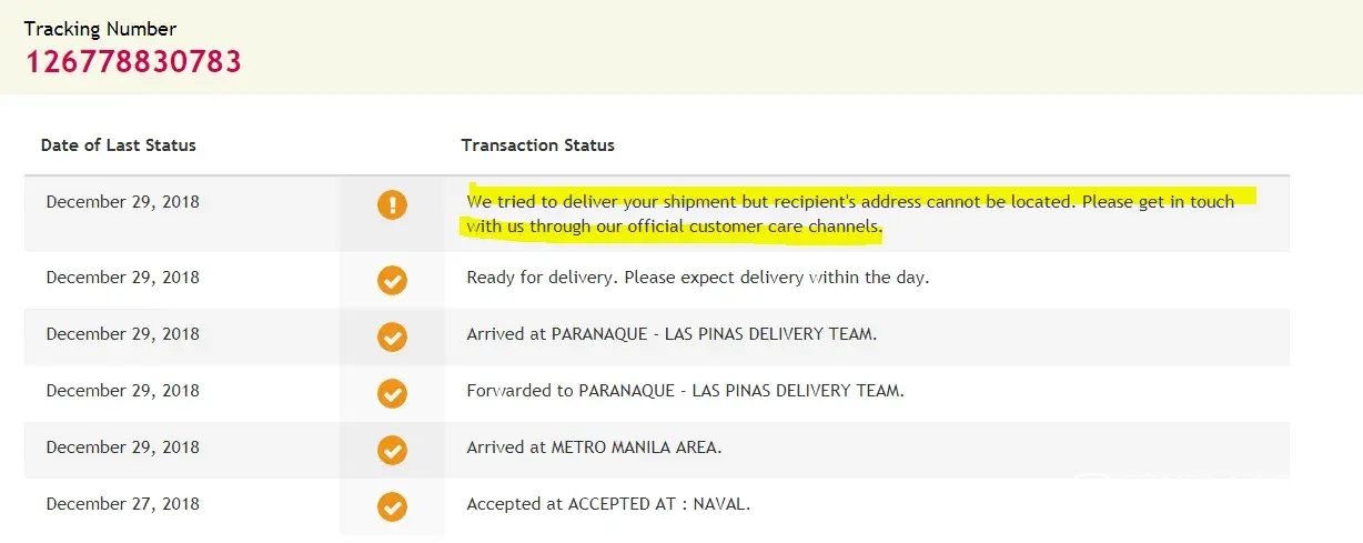 Nag order ako sa supplier ko sa davao nung December 21, tapus trace ko ung tracking number ito lumabas
