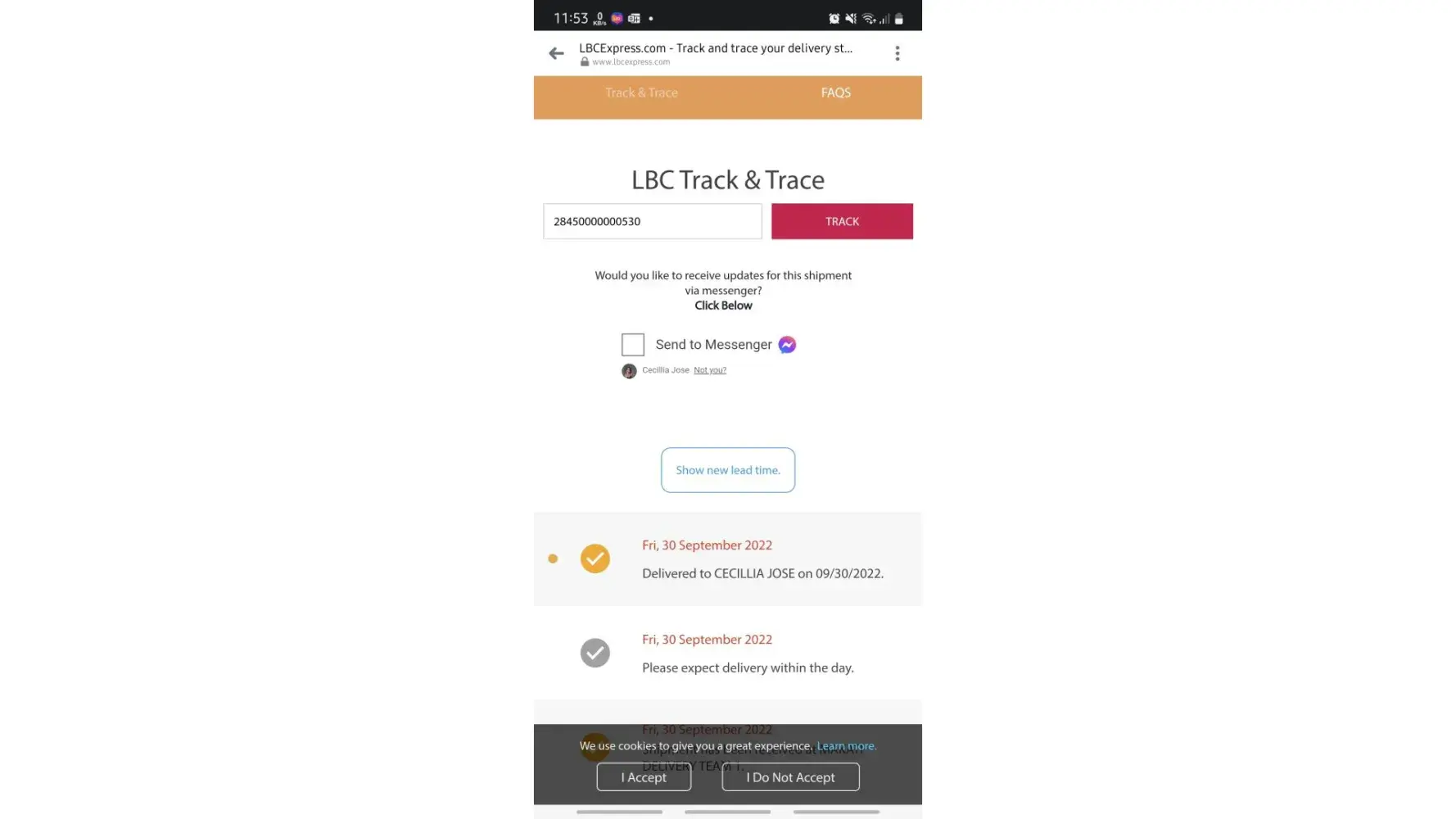 Not yet received package but tagged as delivered in LBC track & trace