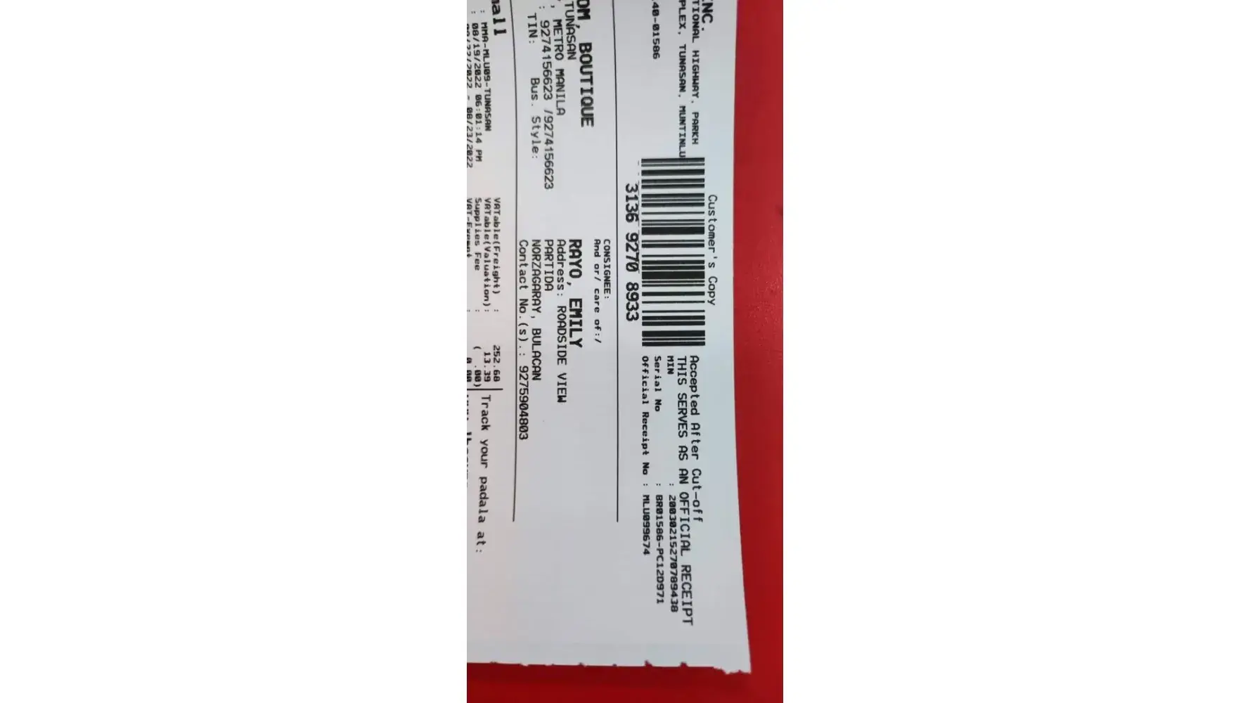 This about my parcel the receiver adress and contact details is they copied it wrong by the lbc center gaisano fiesta mall. I need to correct it I have important docs inside the parcel