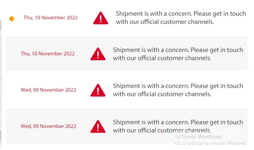 Shipment is with a concern. Please get in touch with our official customer channels.