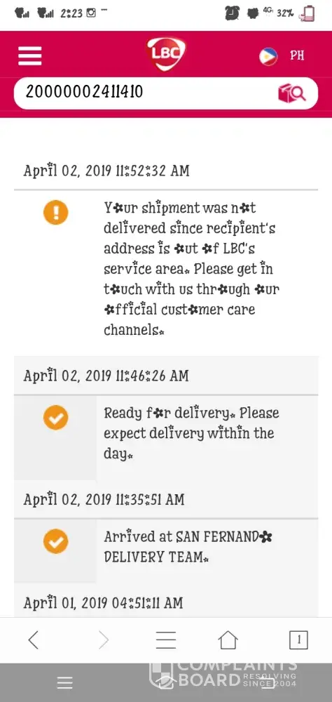I already made follow-ups at LBC Marquee Mall, Angeles City, Pampanga and informed them of the correct address. Up to now, no advise/update from your end. Hoping for your prompt action!