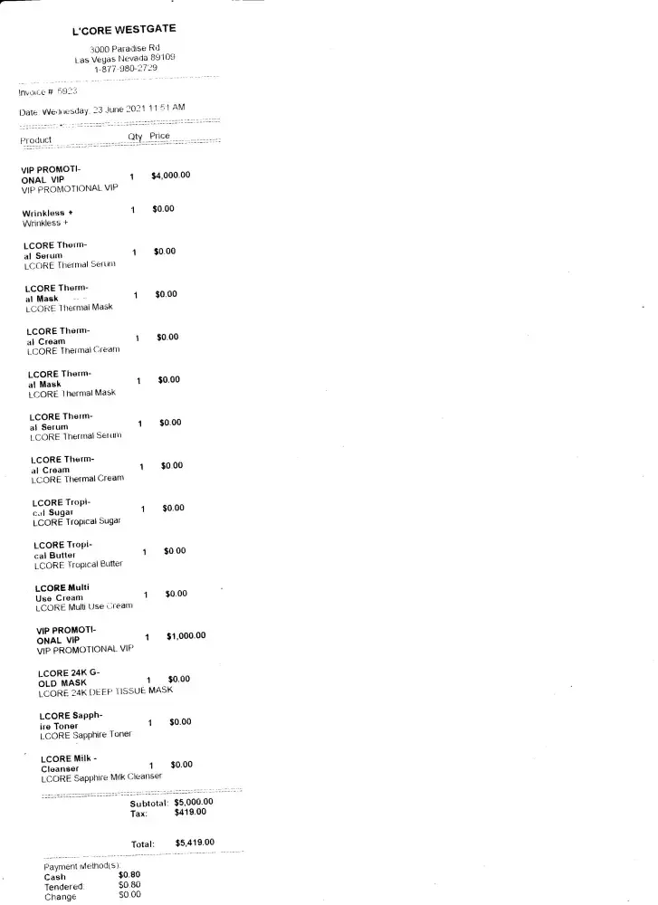 The Sales team took advantage of my memory-impaired dad. My dad was staying at the Westgate in Las Vegas for work, where he walked by the L'core salon daily. They finally lured him in and convinced him to buy $1200+ worth of products for his family back home. He has NEVER made a purchase like this, nor spent this kind of money on something. He has memory issues that can be picked up on if you are in the sales world... I am appalled at the sales staff of this company! Westgate should be ashamed to house this business under their roof.