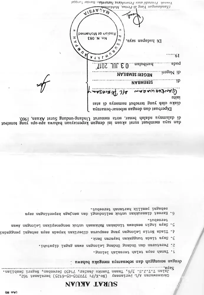 我于2017å¹´5月29日在马æ¥è¥¿äºšå‰éš†å¡é«˜ç‰æ³•é™¢é€šè¿‡ä½ ä»¬ocbc所æ‹å–çš„äº§ä¸šæ ‡å¾—ä¸€é—´åŠç‹¬ç«‹æˆ¿å±‹ã€‚
