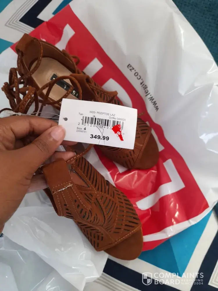 There is a photo of the boots on the left from the store in Canal & right the one from Guguletu.When I purchased those boots not one of the staff examend the boots they just swipe & sell the goods to get rid of the stock.