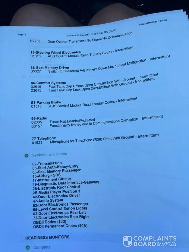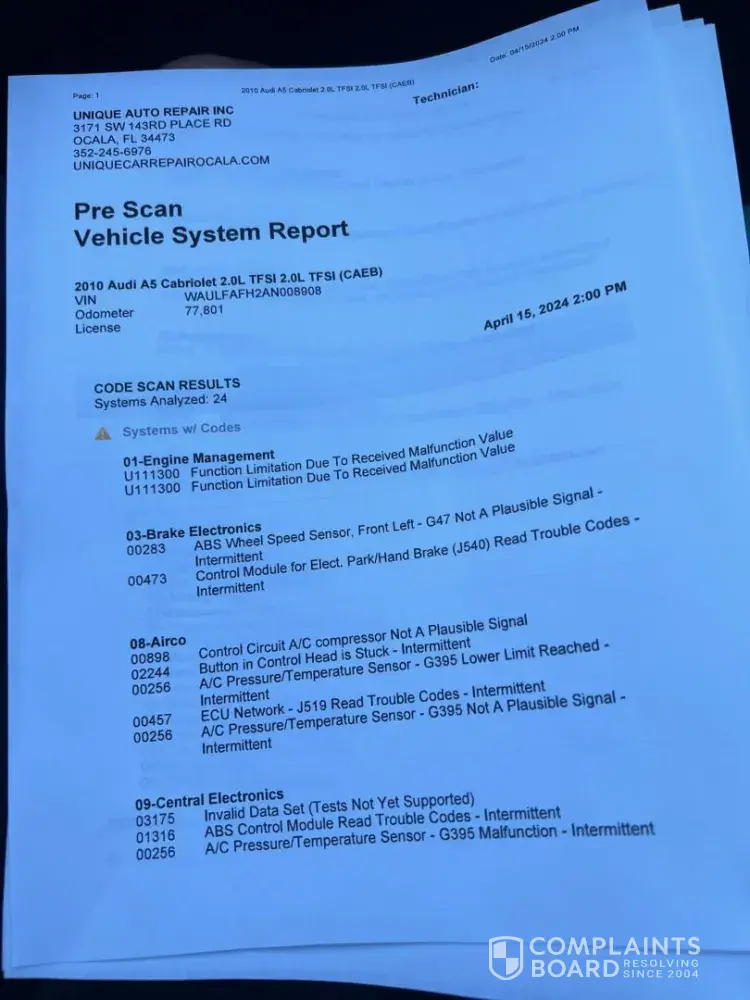 We are now having to put the car on a trailer and tow it back home to try to get it fixed. I had the mechanic run some diagnostics and they found countless issues and diagnostic fault codes with the car. I provided this information to lemon squad and simply ignored it.